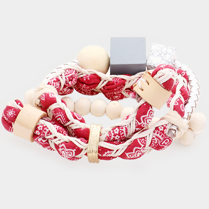 4PCS - Semi Precious Pearl Wood Beaded Stretch Bracelets