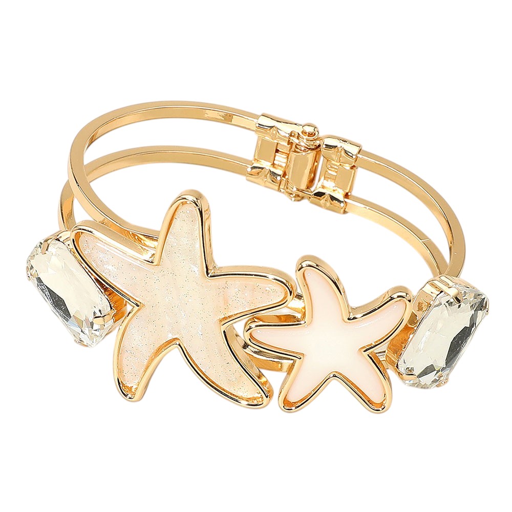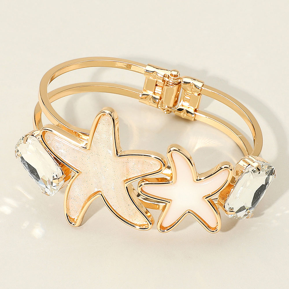 Glittered Resin Double Starfish Hinged Bangle Bracelet