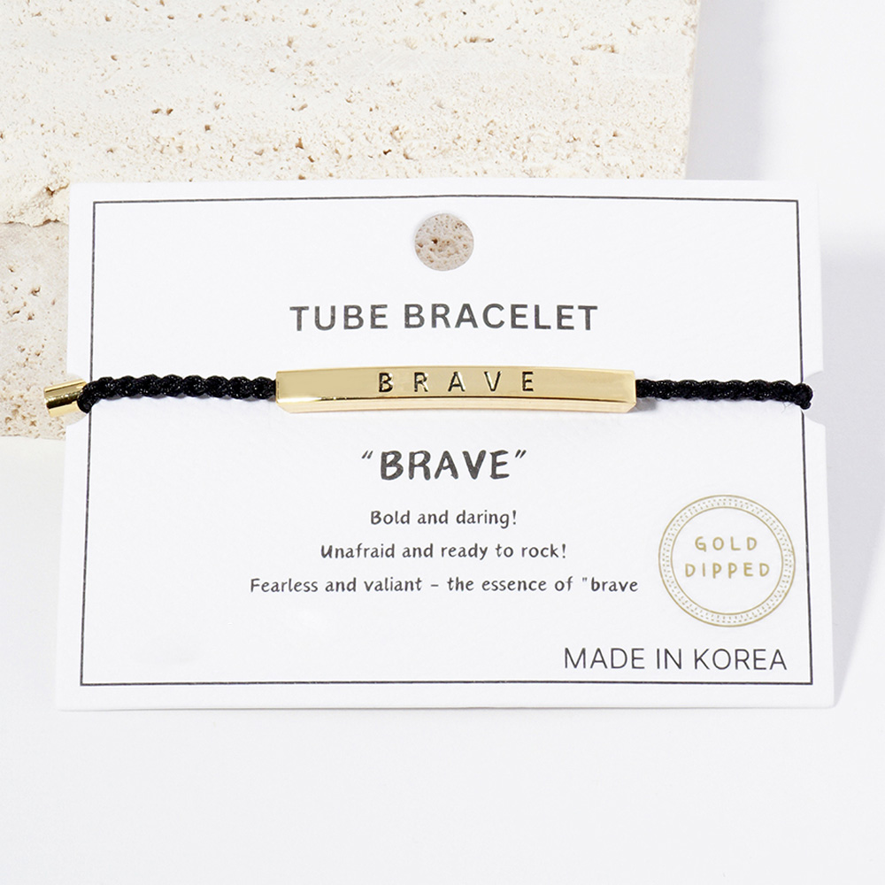 Gold Dipped STRENGTH Message Bar Pointed Rope Adjustable Cinch Pull Tie Bracelet