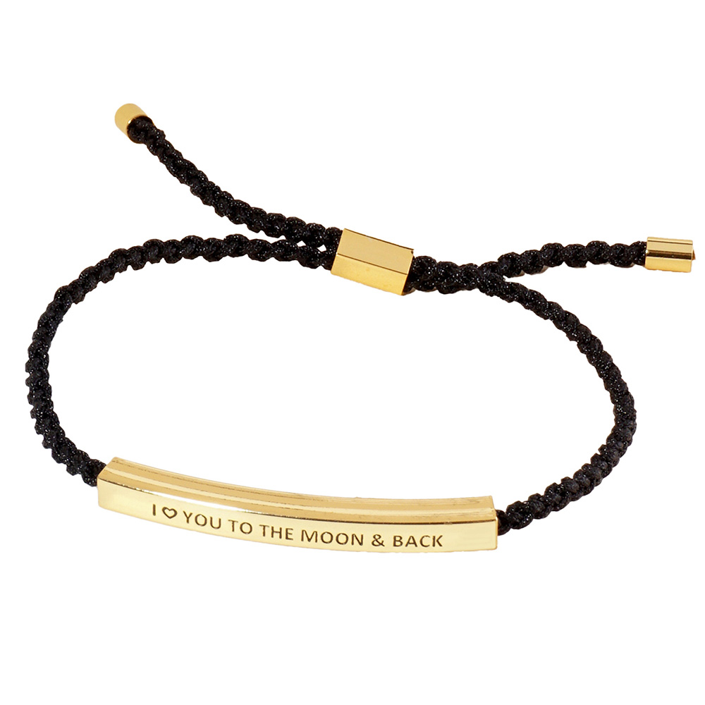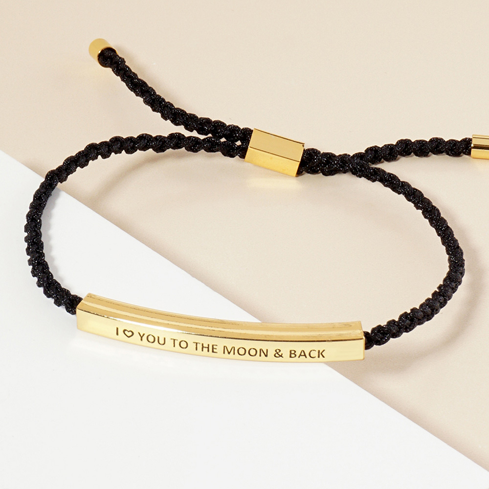Gold Dipped LOVE Message Bar Pointed Rope Adjustable Cinch Pull Tie Bracelet