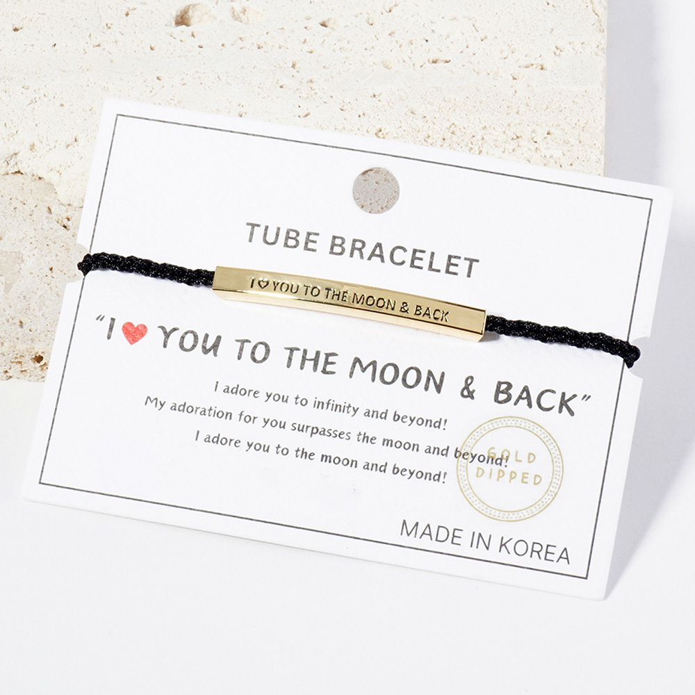 Gold Dipped ALWYAS IN MY HEART Message Bar Pointed Rope Adjustable Cinch Pull Tie Bracelet