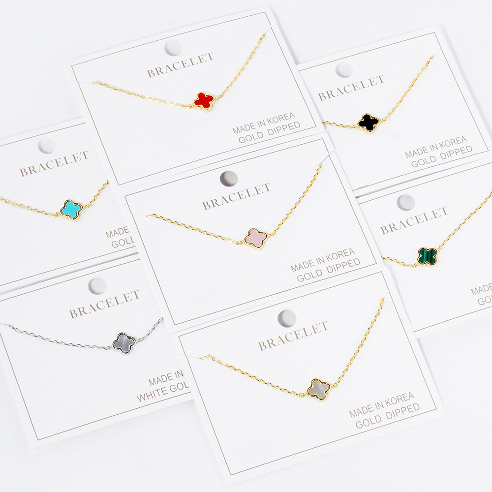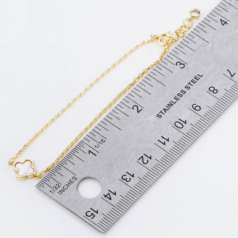 White Gold Dipped Quatrefoil Charm Pointed Bracelet