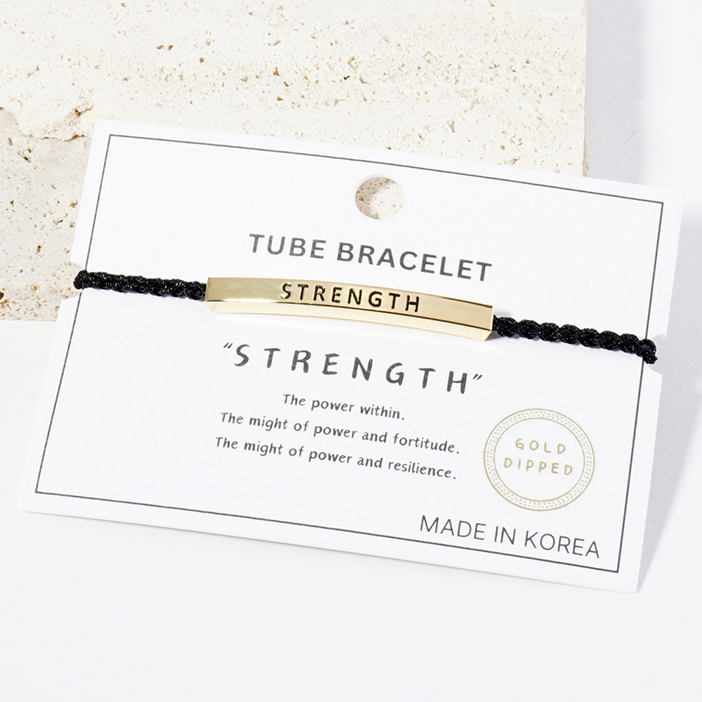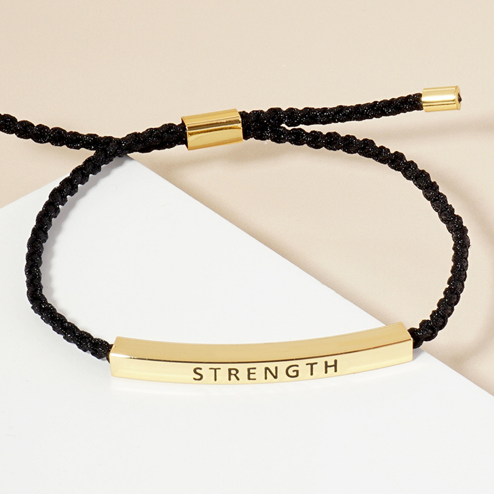 Gold Dipped BRAVE Message Bar Pointed Rope Adjustable Cinch Pull Tie Bracelet