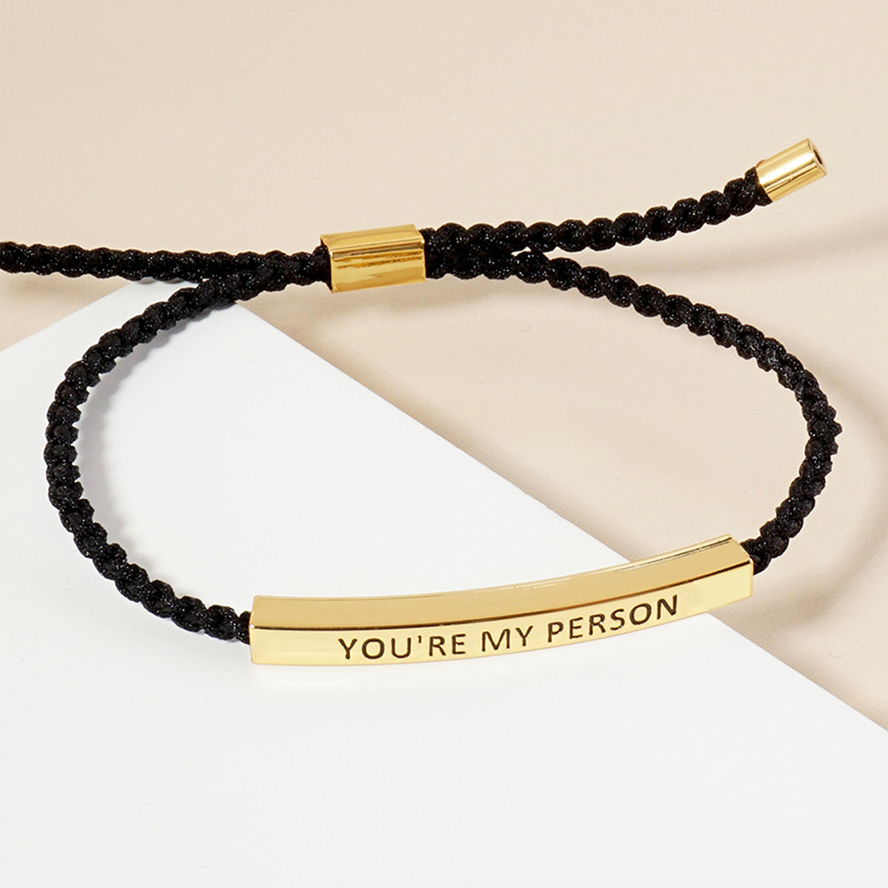 White Gold Dipped MY PESRSON Message Bar Pointed Rope Adjustable Bracelet
