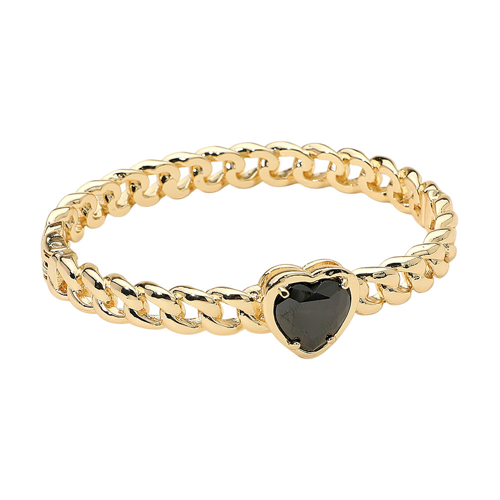 Heart CZ Stone Accent Hinged Chain-Link Bangle Bracelet