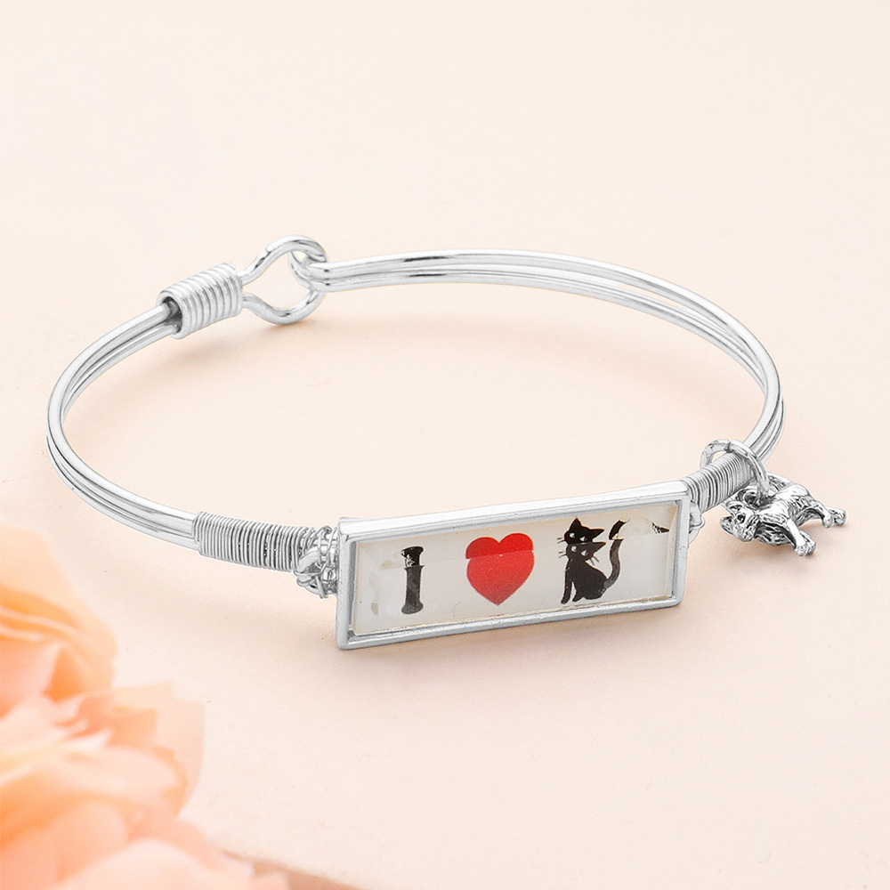 I Love Cat Charm Message Hook Bracelet