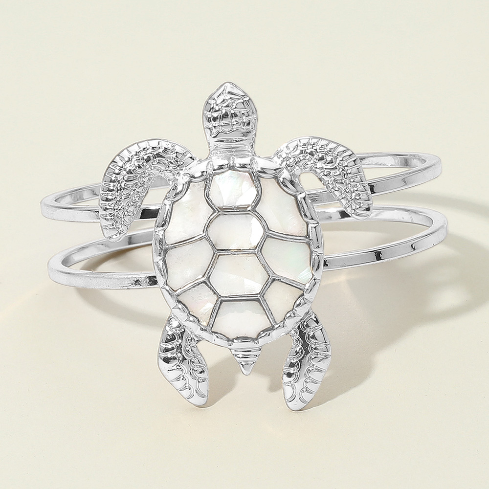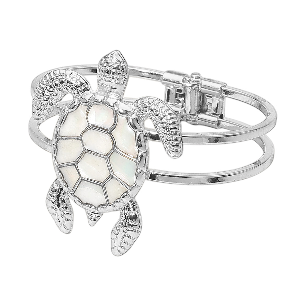 Intricate Mother of Pearl Shell Design Turtle Hinged Bracelet