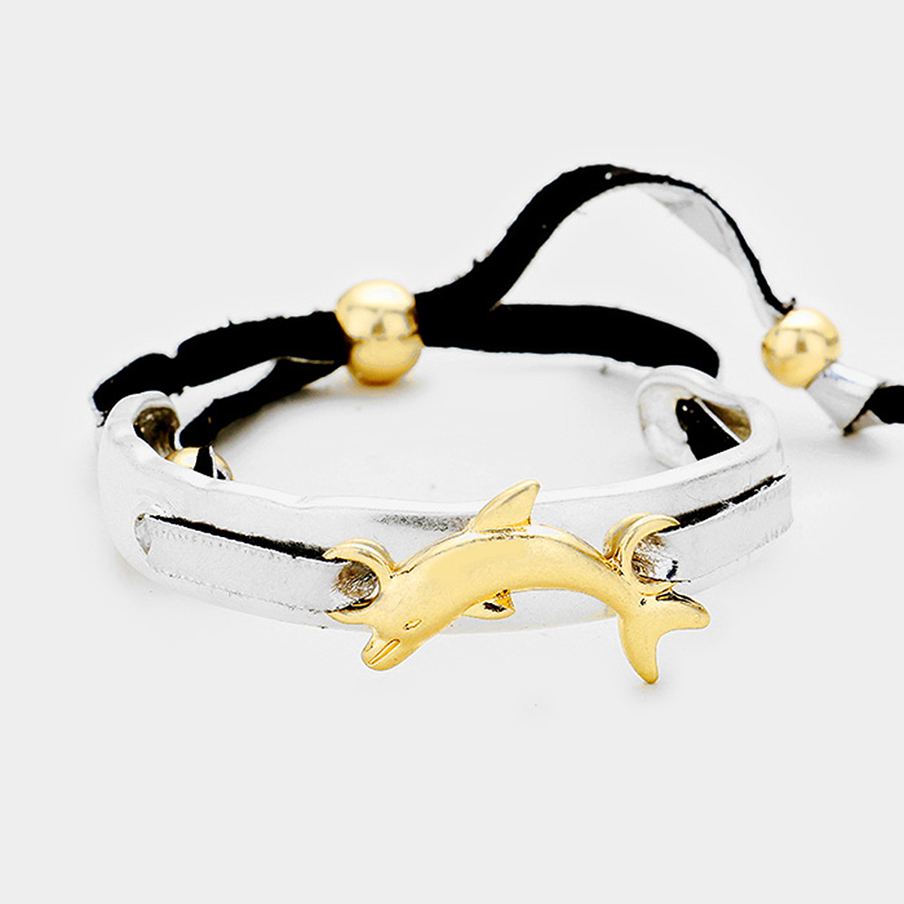 Metal Dolphin Adjustable Pull Tie Bracelet