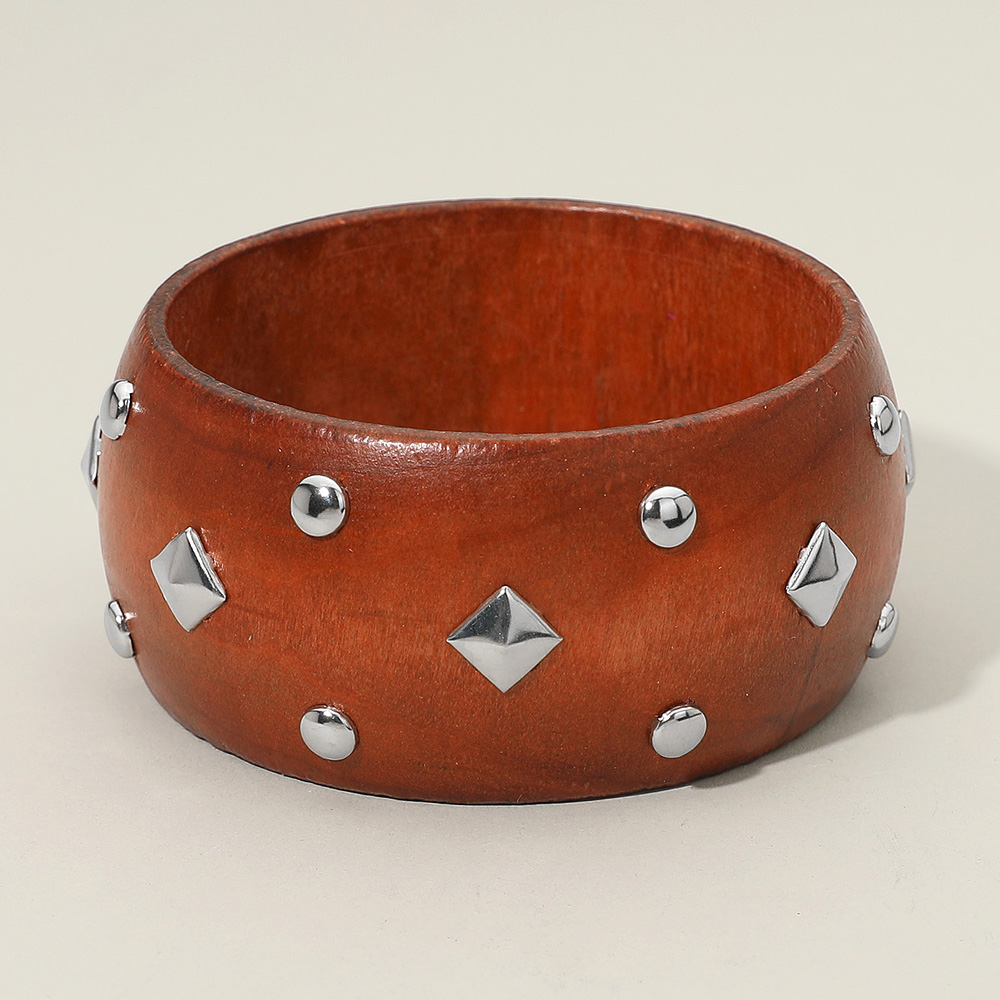 Metal Stud Embellished Wide Wooden Bangle Bracelet