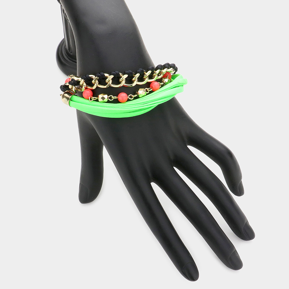 7PCS - Tassel Heart Fabric Flower Charm Beaded Stretch Bracelets