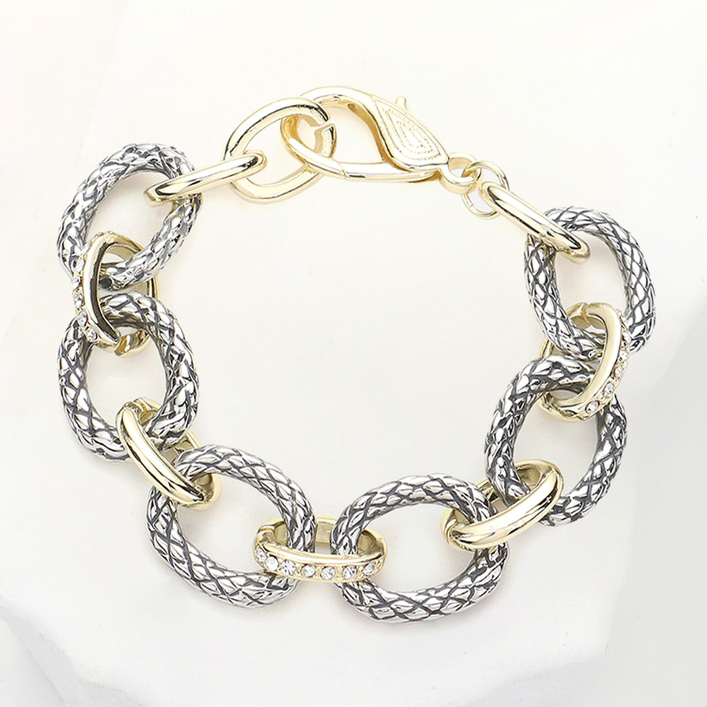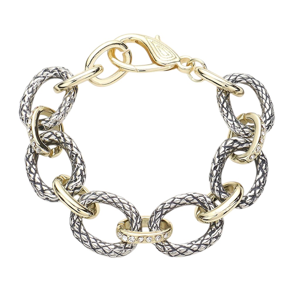 Rhinestone Embellished Open Metal Oval Link Bracelet