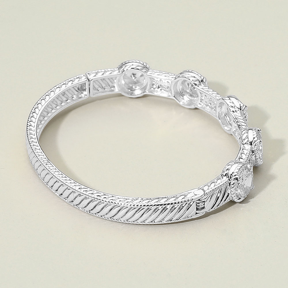 Round CZ Stone Accent Metal Rope Hinged Bangle Bracelet