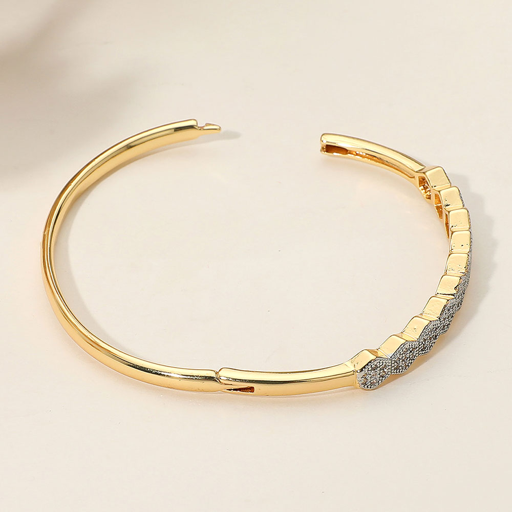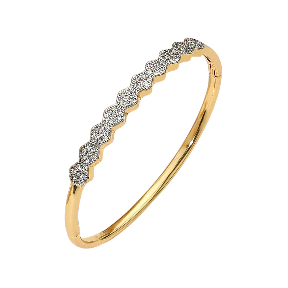 • Elegant bangle bracelet with a geometric zigzag design adorned with shimmering crystal accents. A modern yet timeless piece, perfect for adding sophisticated sparkle and distinctive style to your everyday or evening jewelry collection.