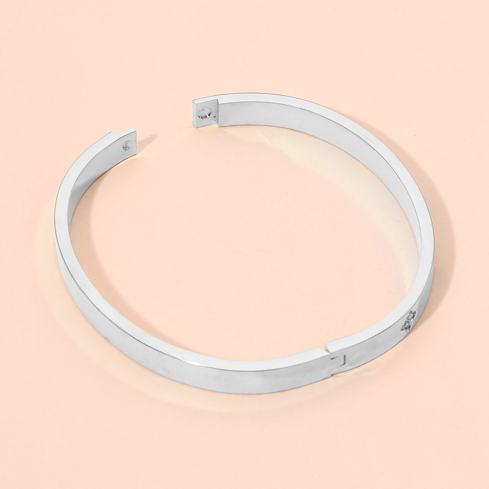 • Minimalist hinged bangle bracelet accented with evenly spaced crystal details for subtle sparkle. Designed with a sleek structured silhouette that layers easily or stands alone, this bracelet offers a refined look suitable for everyday wear, gifting, and modern fashion jewelry collections.