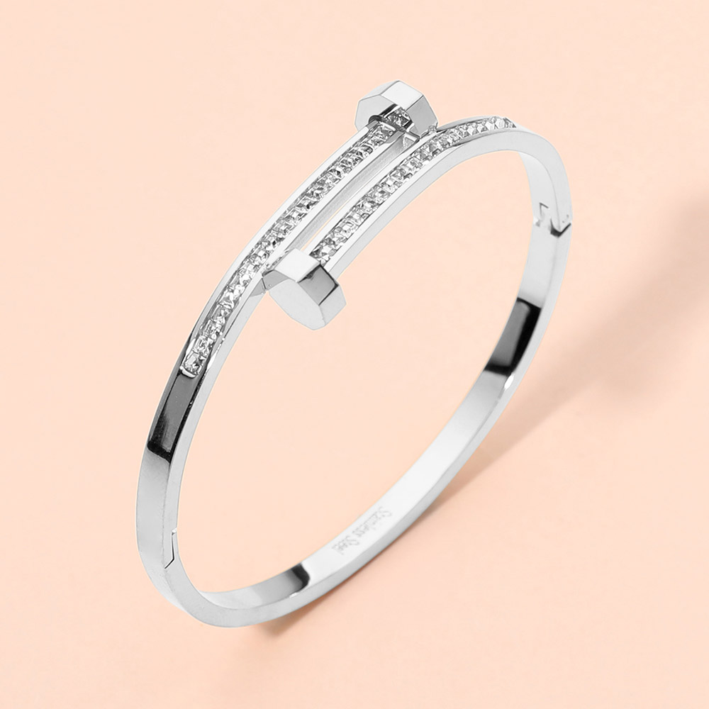 Stainless Steel CZ Stone Paved Nail Head Tip Hinged Bangle Bracelet Stainless Steel CZ Stone Paved Nail Head Tip Hinged Bangle Bracelet Stainless Steel CZ Stone Paved Nail Head Tip Hinged Bangle Bracelet