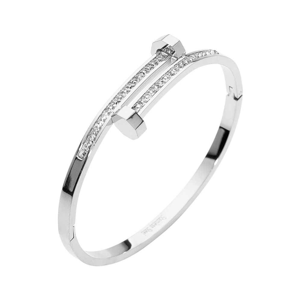 • Statement cuff bracelet featuring a modern nail-inspired silhouette with sparkling crystal accents. Designed with a sleek hinged structure for comfortable wear, this bracelet adds an edgy yet refined touch to everyday outfits, special occasions, and curated fashion jewelry collections.