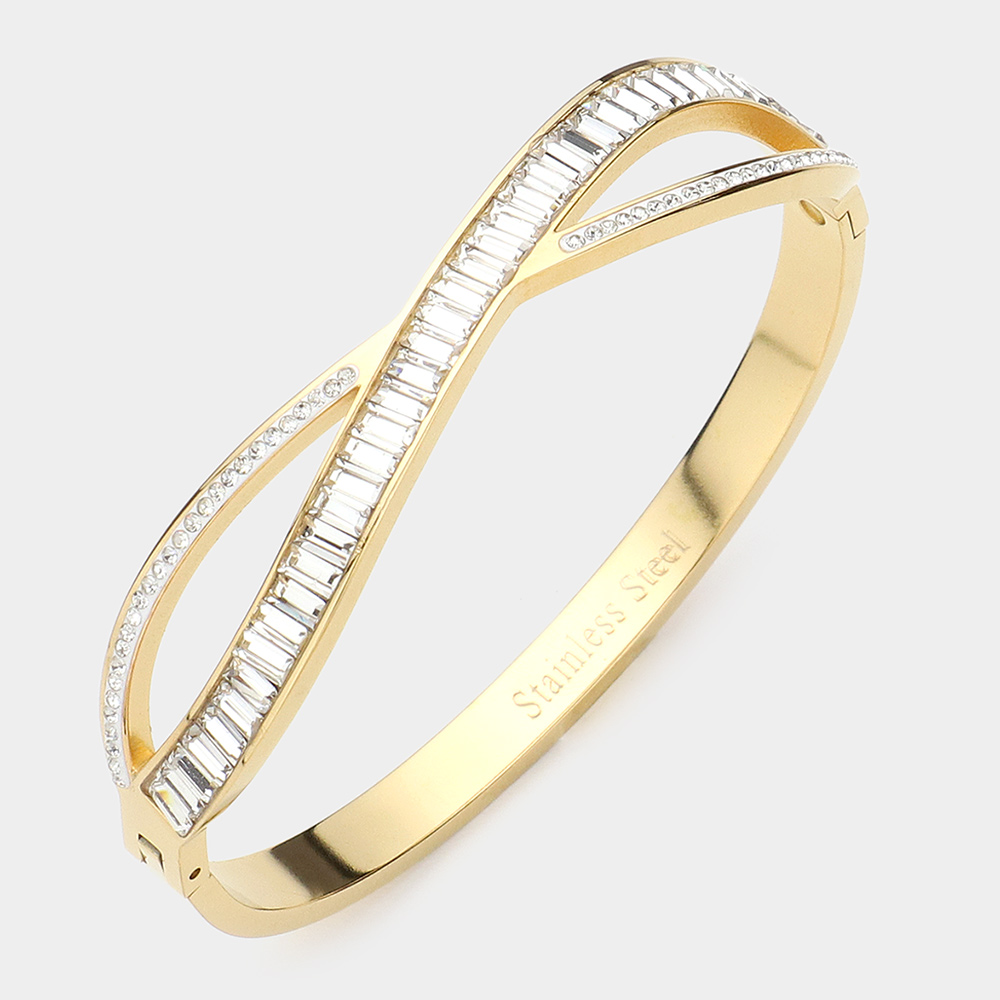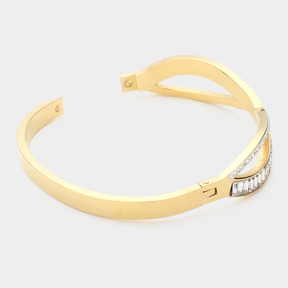 Stainless Steel Emerald Round Stone Paved Infinity Hinged Bracelet