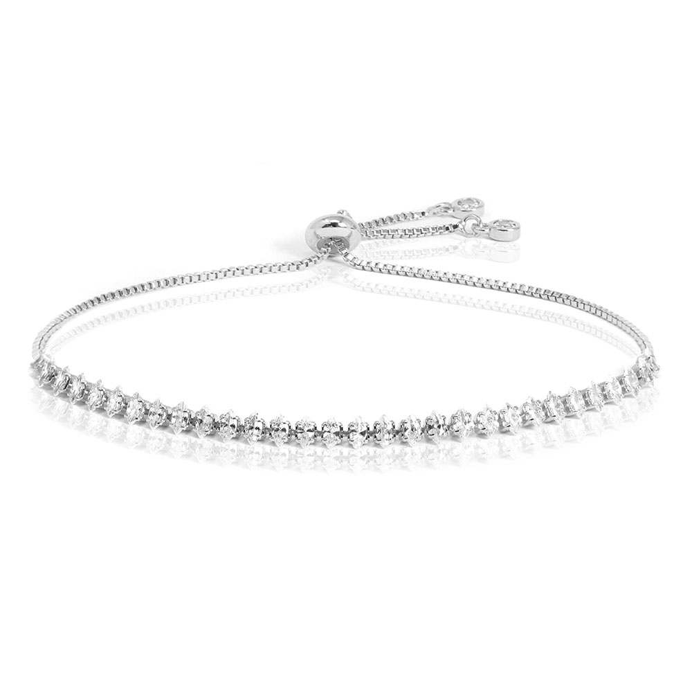 Stainless Steel Marquise CZ Stone Tennis Chain Pull Tie Adjustable Bracelet