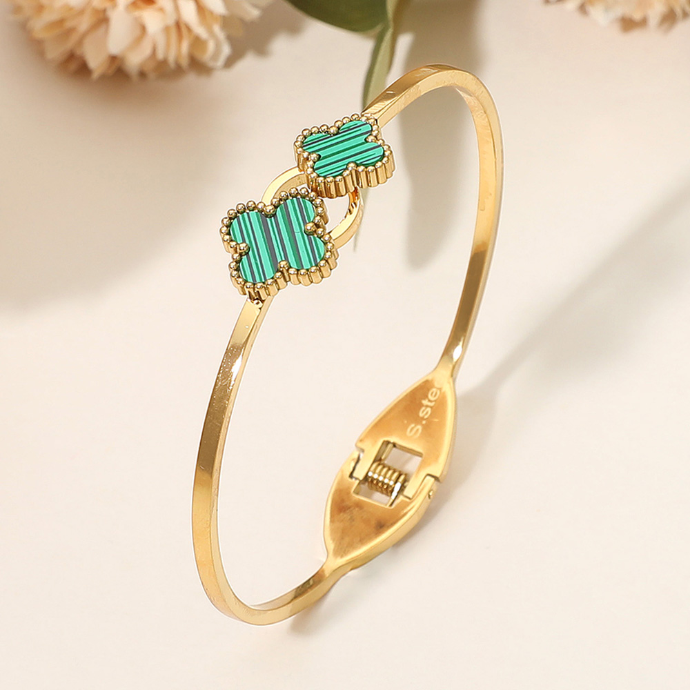 Details • Size : 0.6" H, 2.4" D • Hinged Closure • Bring elegance to your wrist with this quatrefoil charm hinged bangle bracelet. Designed with sleek detailing and a secure clasp, it’s perfect for both everyday wear and special occasions. A timeless accessory that adds refined charm and makes a thoughtful gift choice. • Stainless Steel
