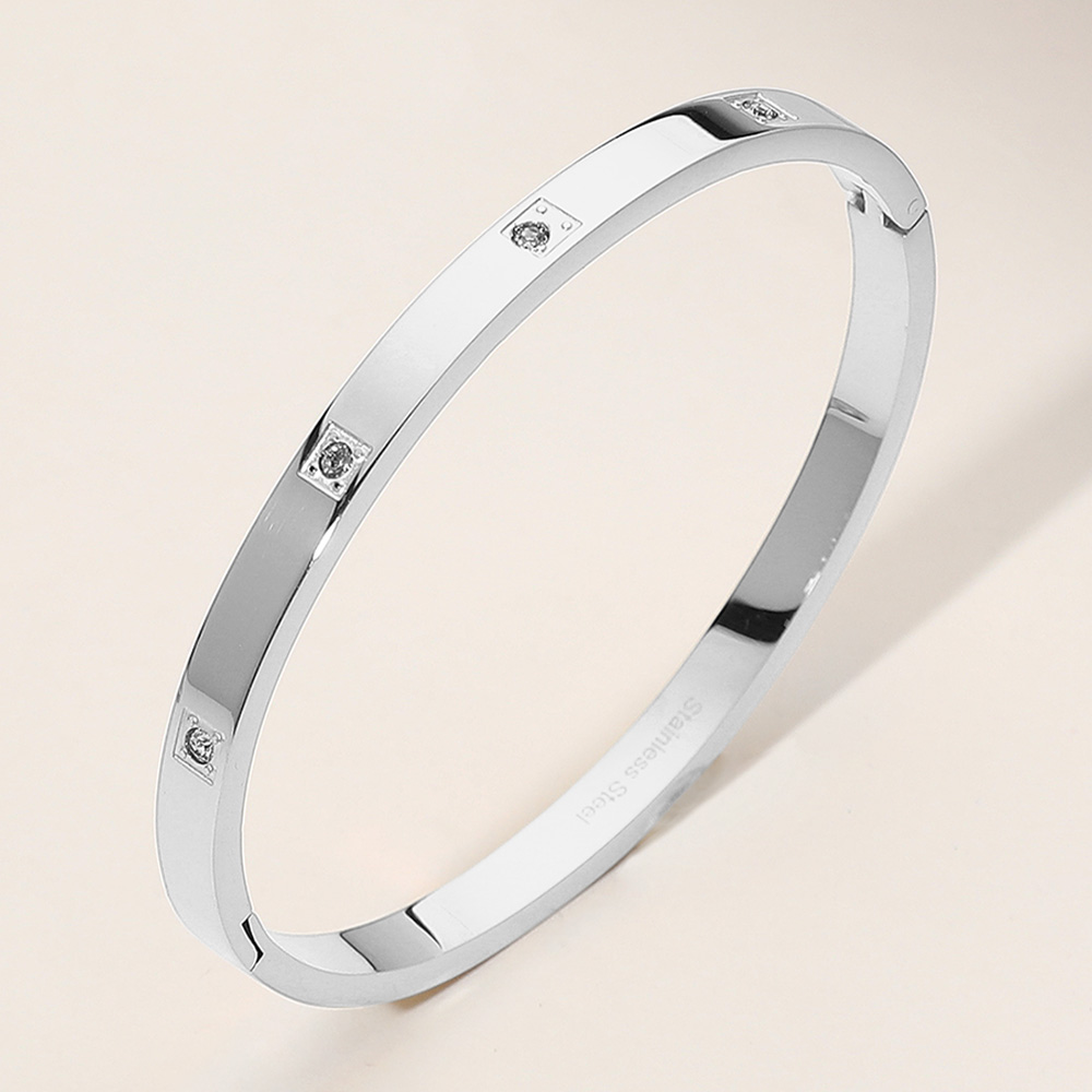 • Elegant bangle bracelet featuring a polished design accented with sparkling crystals for a refined touch. Perfect for stacking or wearing alone, this versatile accessory complements both everyday outfits and formal looks with timeless sophistication.