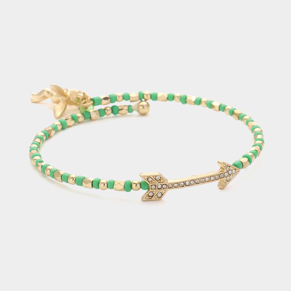 Stone Paved Arrow Pointed Cupid Charm Beaded Adjustable Bracelet