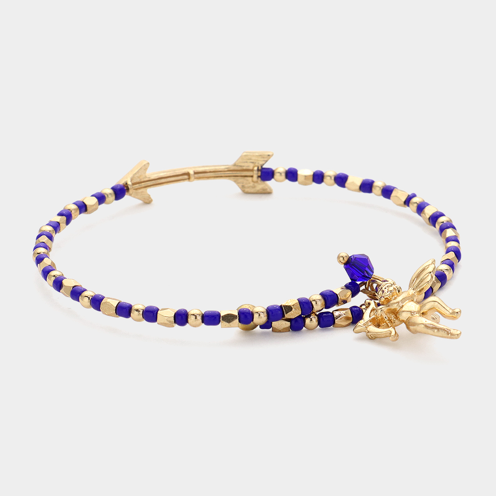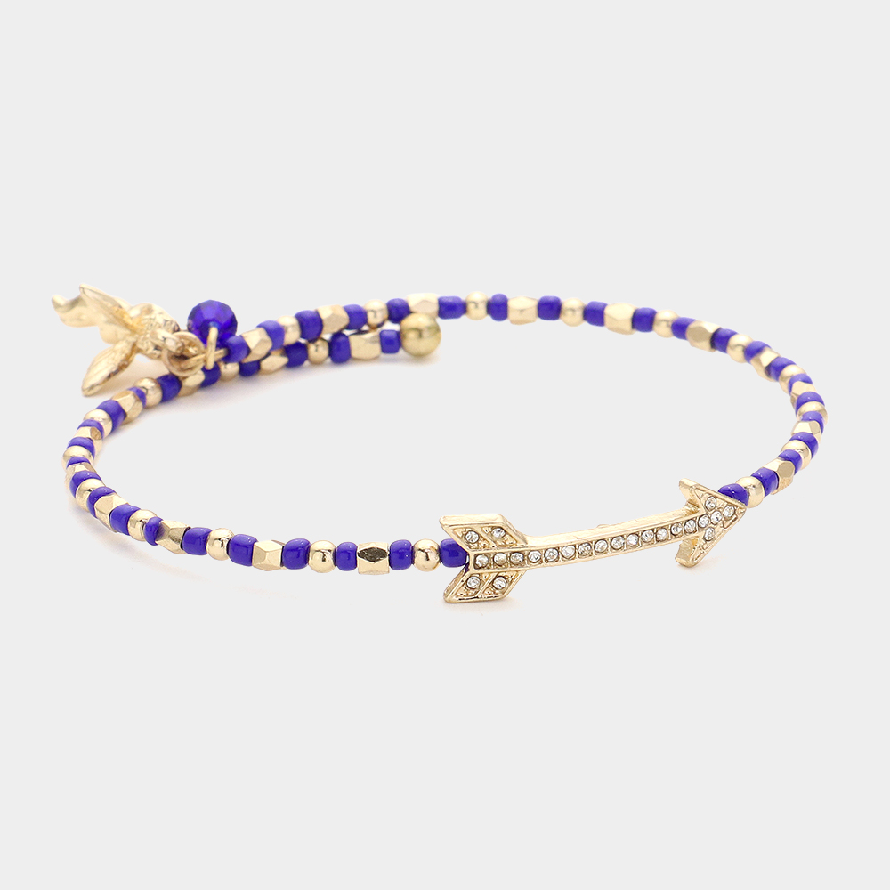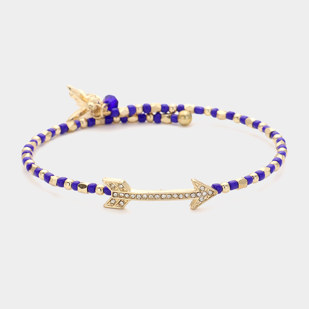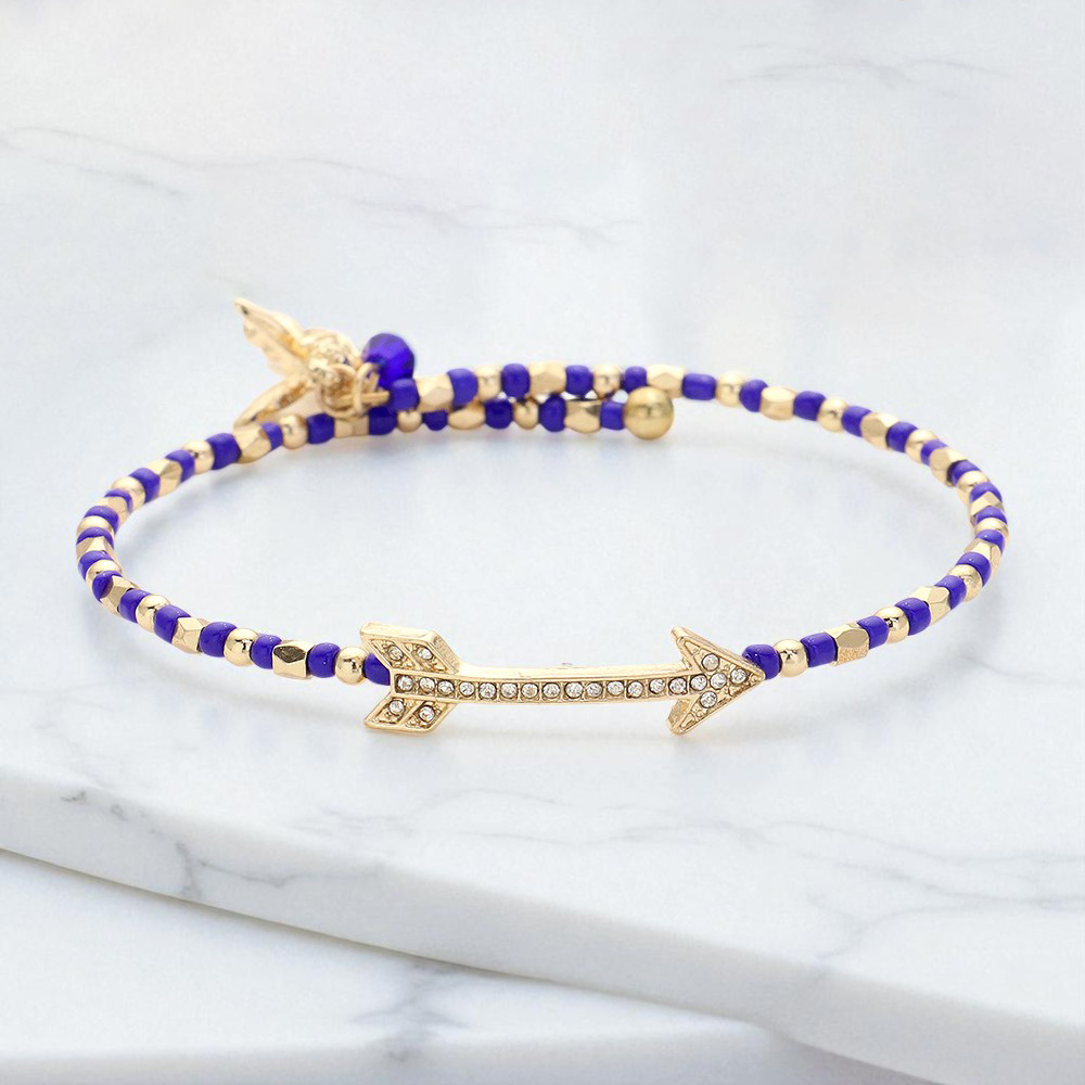 Stone Paved Arrow Pointed Cupid Charm Beaded Adjustable Bracelet
