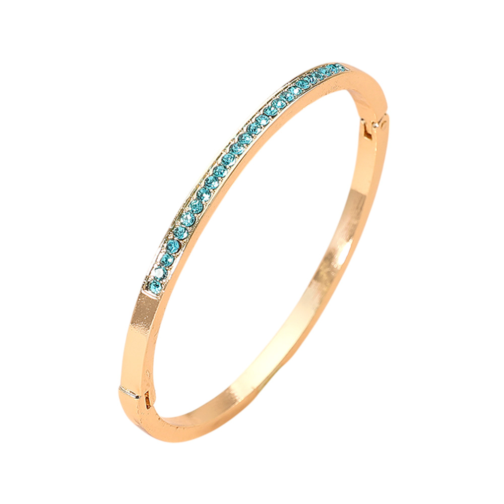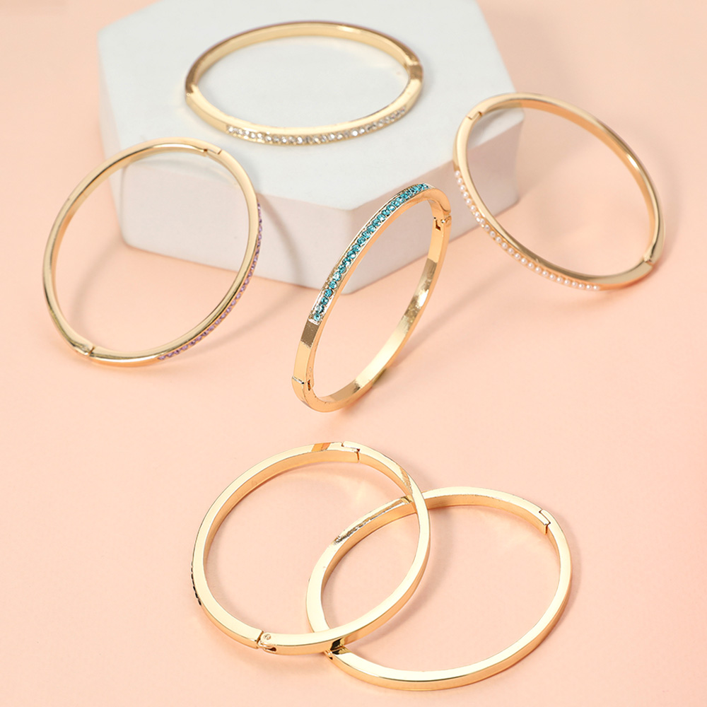Details • Size : 0.2" H, 2.3" D • Hinged Closure • Elegant slim bangle bracelet featuring a single row of sparkling crystals. A timeless, lightweight accessory perfect for layering or wearing solo for a subtle, refined touch. • Lead and Nickel Compliant