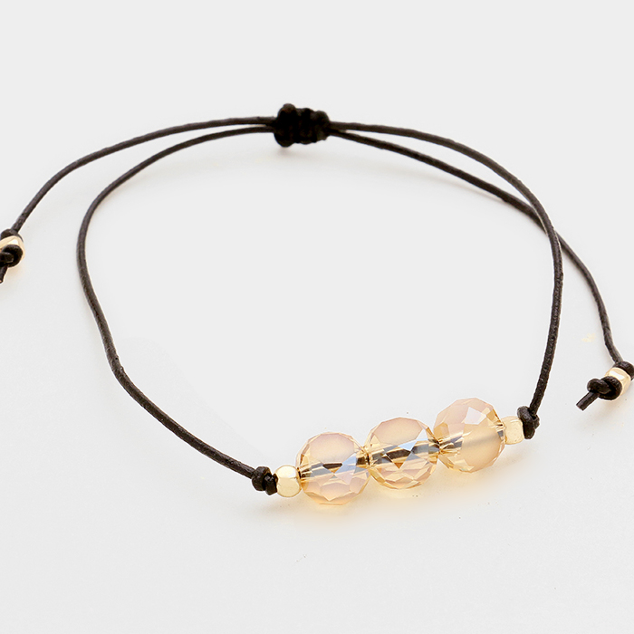 Triple Glass Beaded Adjustable Cinch Pull Tie Bracelet