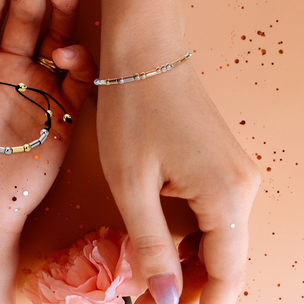 Details • Size : 0.1" H • Adjustable • Celebrate inner strength with this Morse code bracelet spelling WARRIOR. Featuring metallic beads on an adjustable cord, it’s a bold and meaningful accessory symbolizing courage, resilience, and empowerment for everyday wear or gifting. • Lead and Nickel Compliant