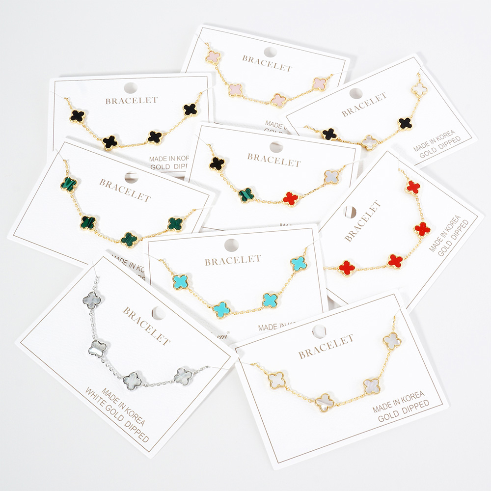 Gold Dipped Mother Of Pearl Quatrefoil Station Bracelet
