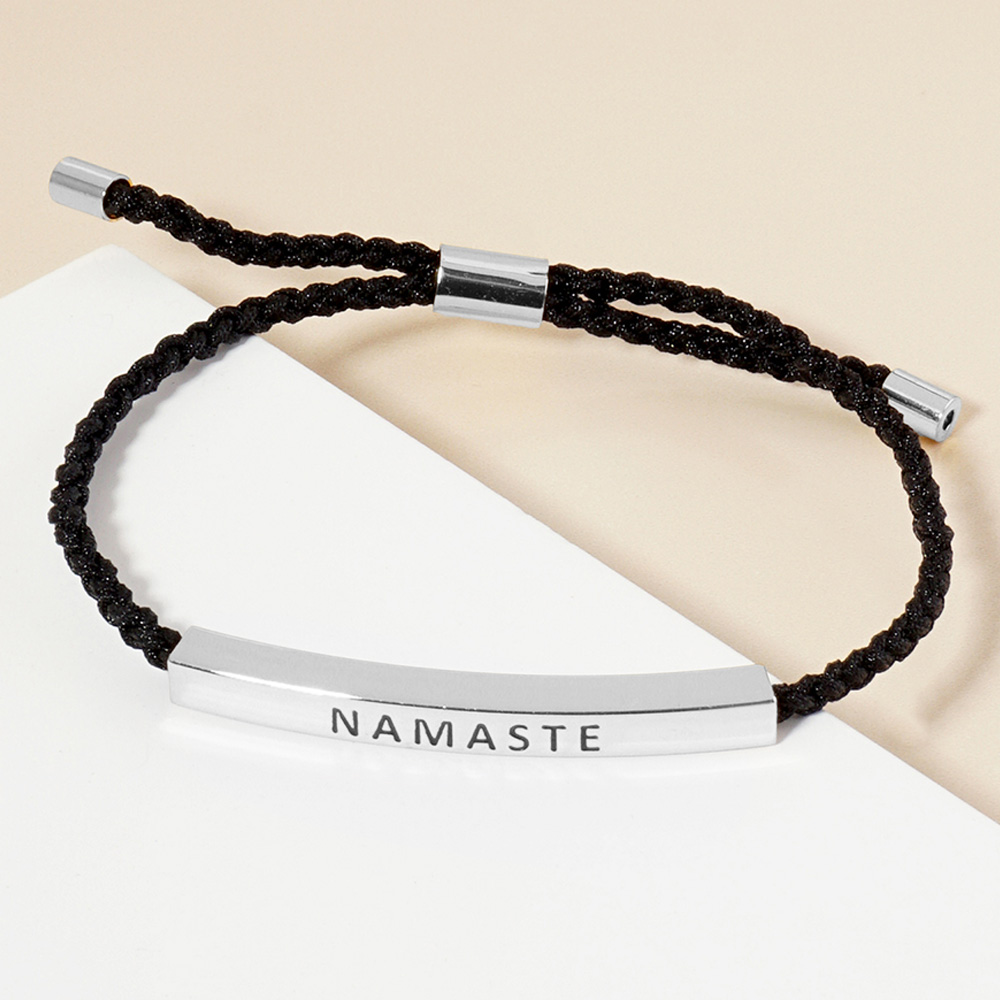 Gold Dipped NAMASTE Message Bar Pointed Rope Adjustable Cinch Pull Tie Bracelet