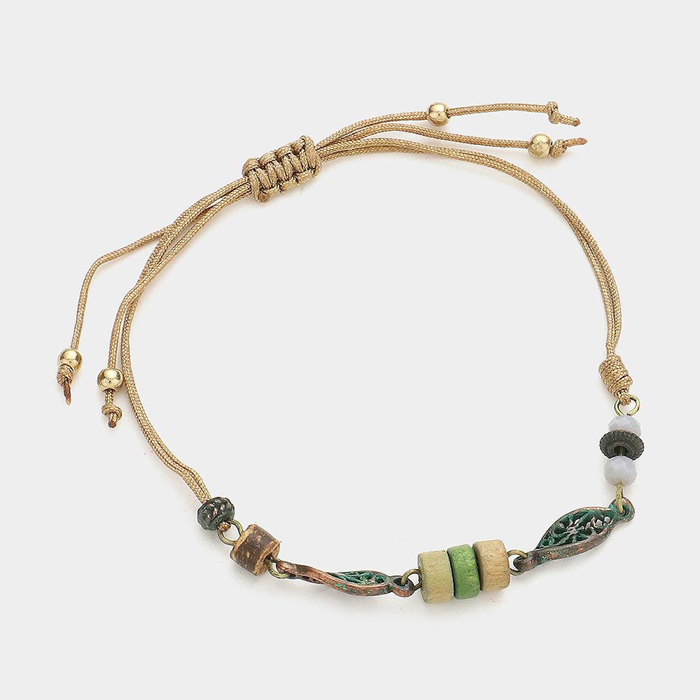 Wooden Beaded Adjustable Cinch Pull Tie Bracelet
