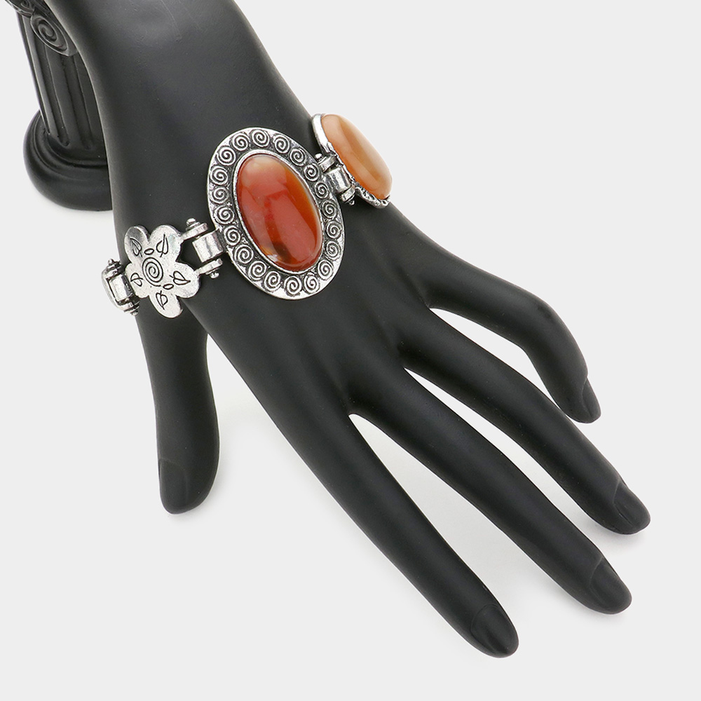 Celluloid Acetate Abstract Printed Bold Oval Link Statement Necklace