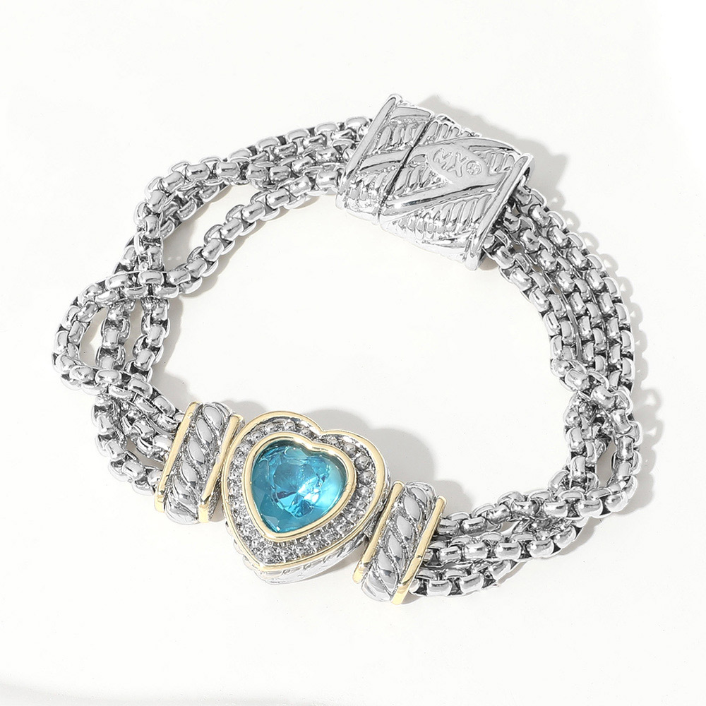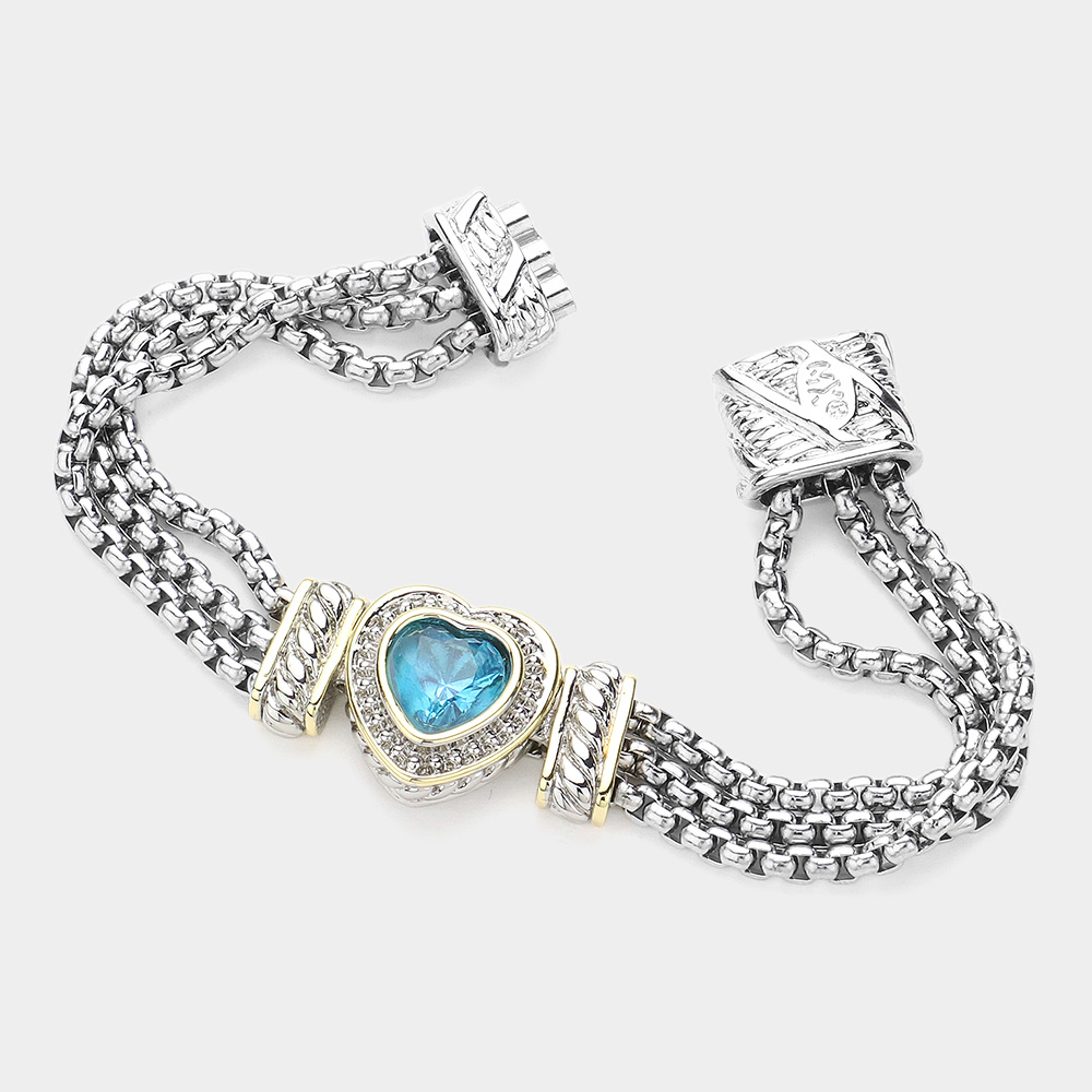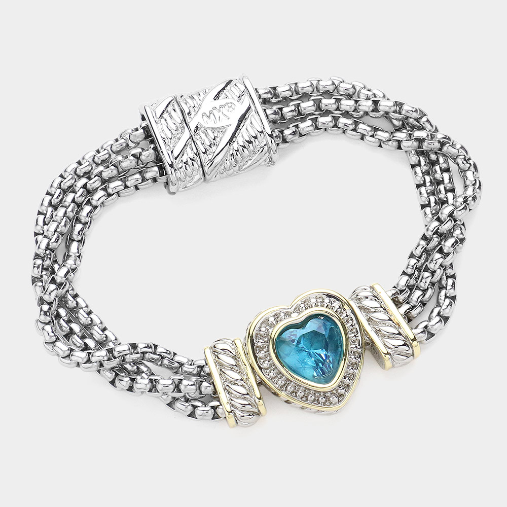 • Chic multi-strand bracelet with a heart-shaped centerpiece embellished with sparkling accents. Designed with a secure magnetic clasp, this elegant bracelet adds a stylish touch to everyday wear and special occasions.