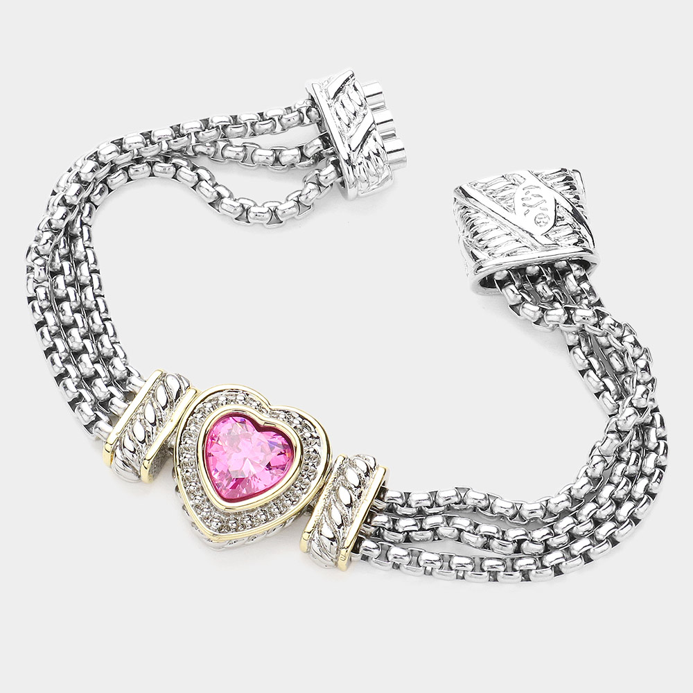 • Chic multi-strand bracelet with a heart-shaped centerpiece embellished with sparkling accents. Designed with a secure magnetic clasp, this elegant bracelet adds a stylish touch to everyday wear and special occasions.
