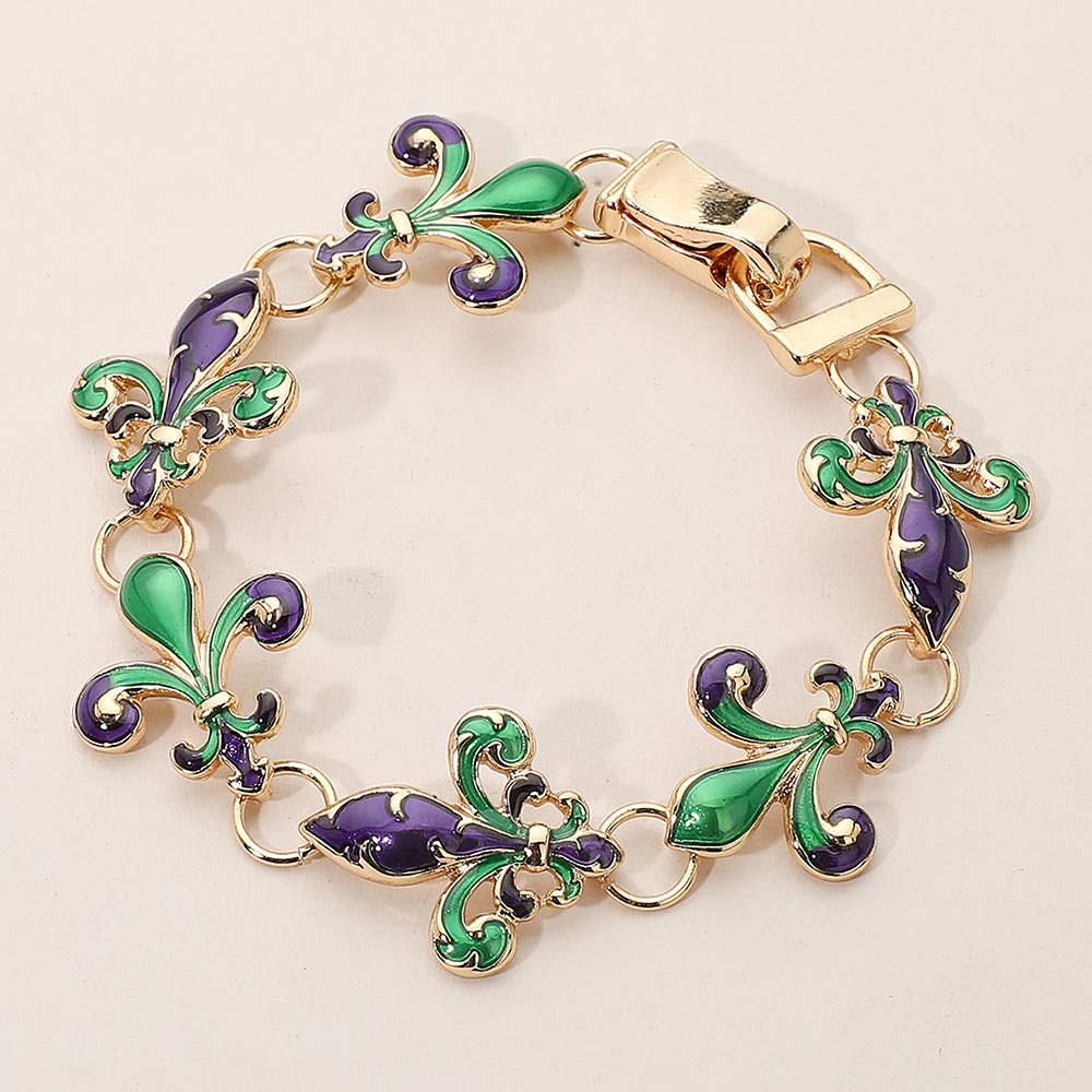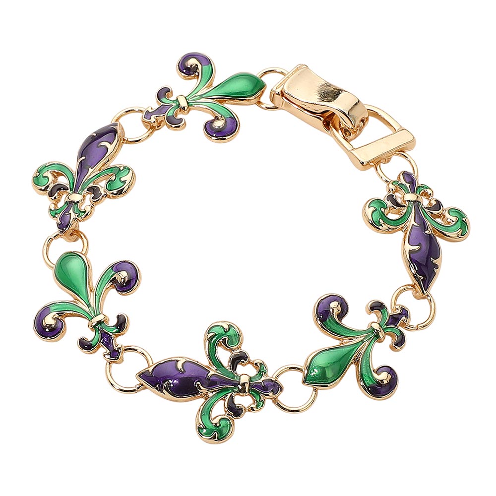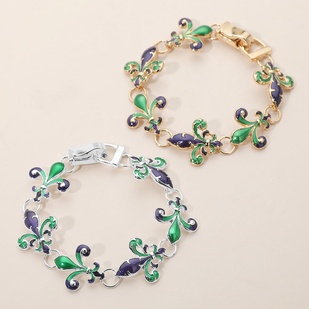 • This fleur-de-lis enamel bracelet showcases exquisite craftsmanship with its intricate linked design and artistic flair. A symbol of elegance and strength, it adds a refined touch of sophistication and color, perfect for enhancing both casual and dressy looks.