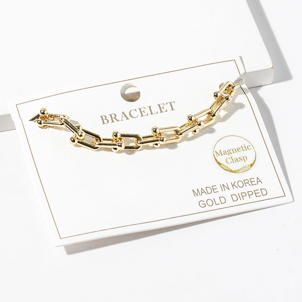 • Enhance your everyday style with this geometric link bracelet featuring delicate beaded accents and a secure clasp closure. Its modern chain design adds a touch of sophistication, making it a versatile accessory for casual looks or elegant evening wear.