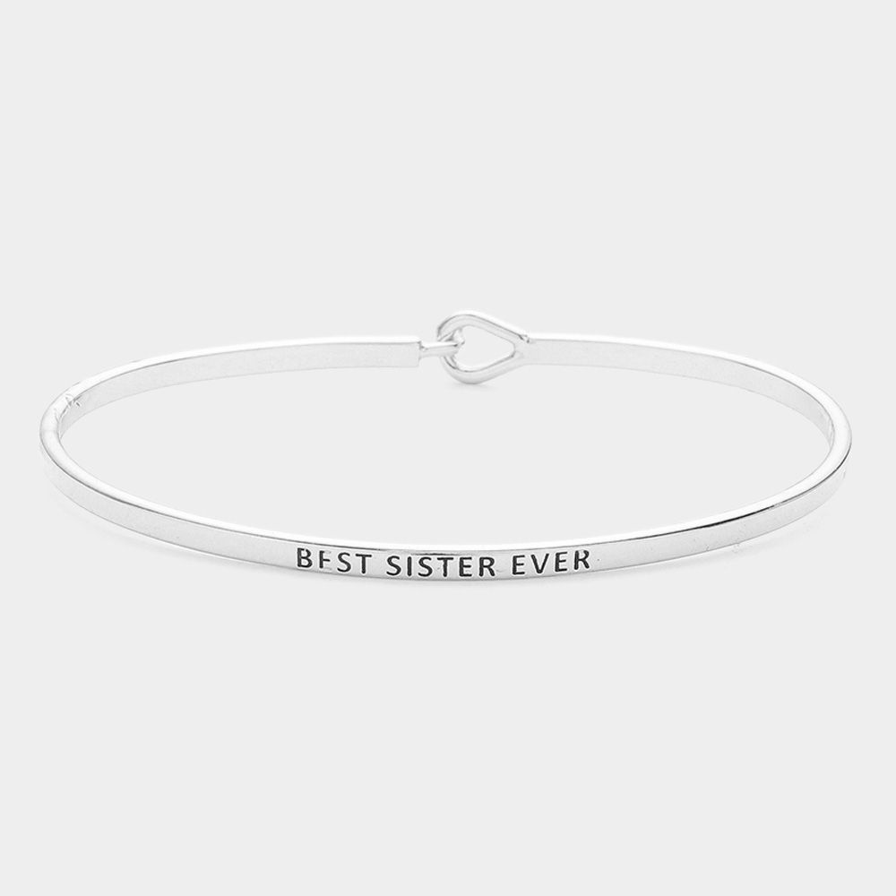 "Best Sister Ever" Thin Brass Metal Hook Bracelet