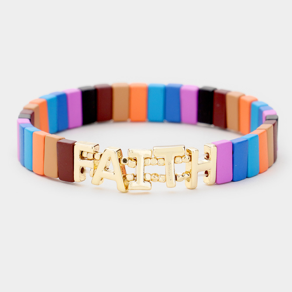 Multi Beaded Rectangle with Tassel Stretch Bracelet