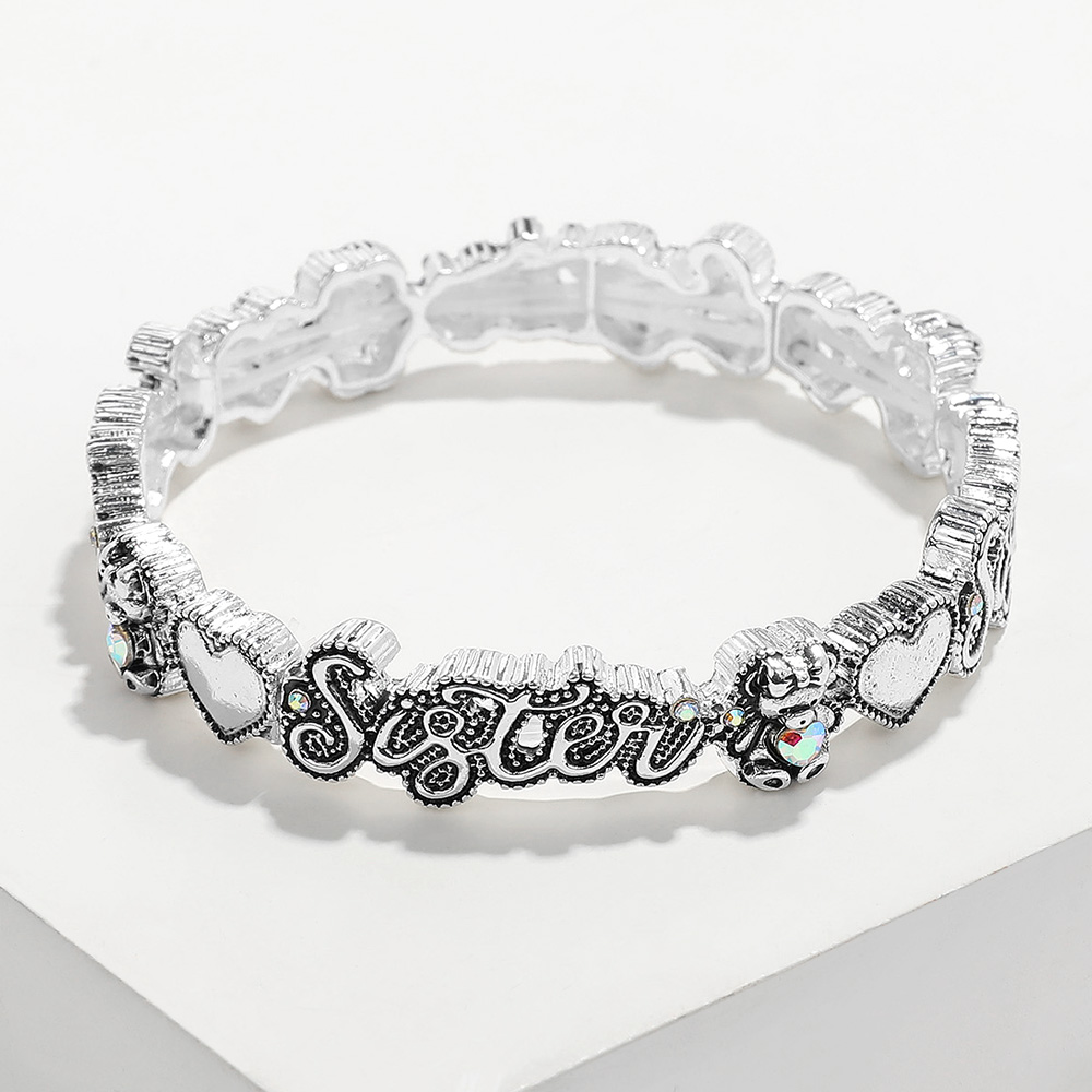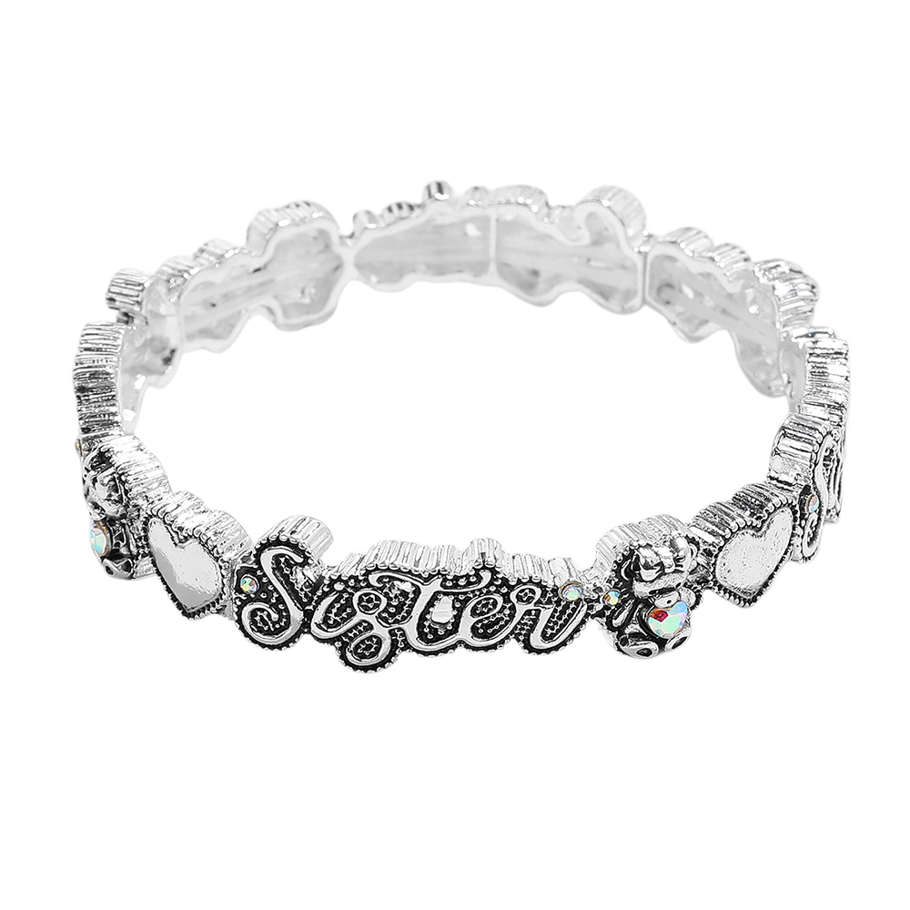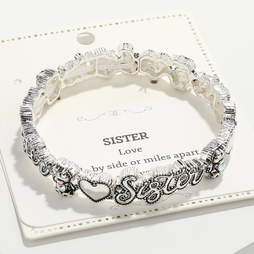 SISTER Message Antique Metal Stretch Bracelet