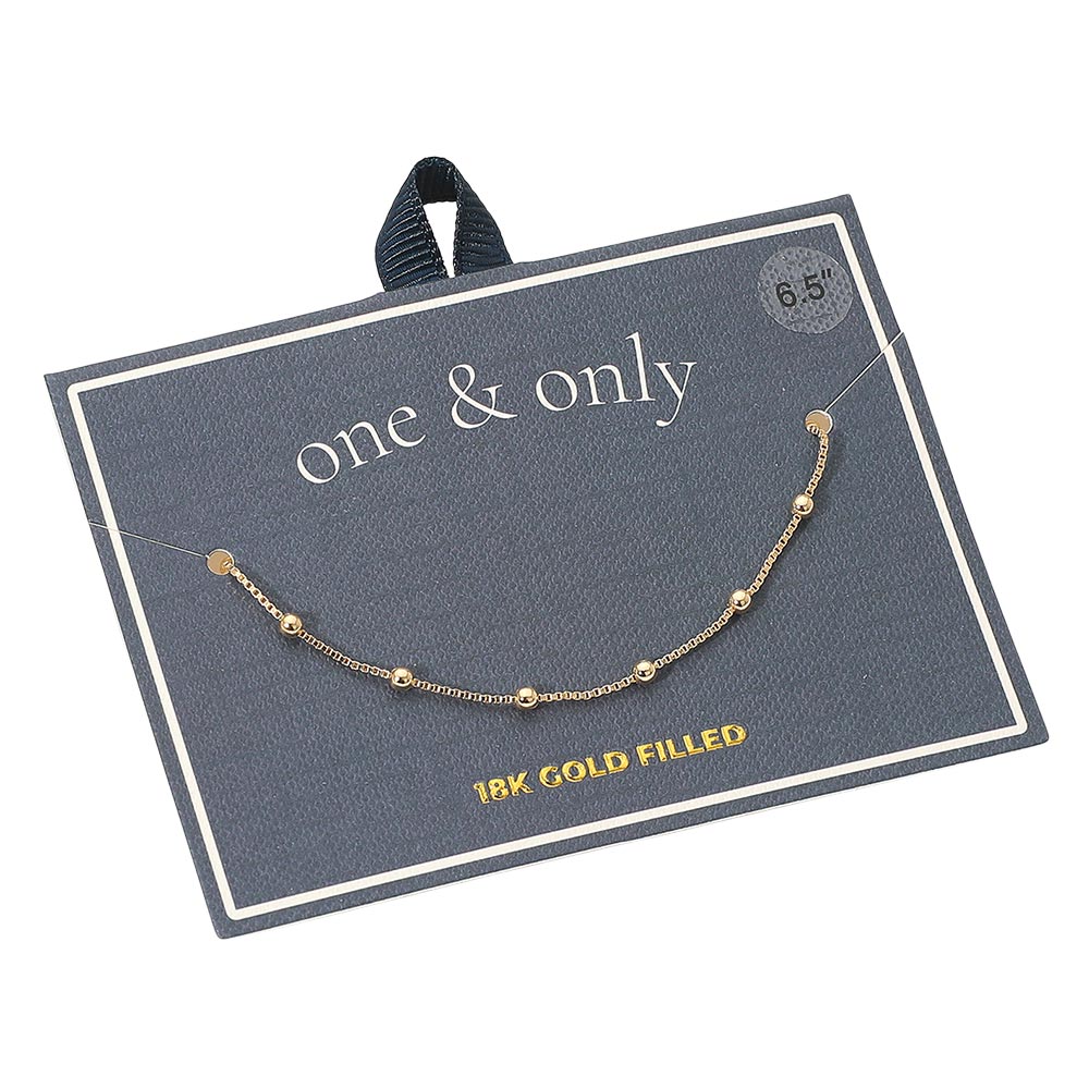 Details • Size : 0.1" H (2mm), 6.5" L • Lobster Clasp Closure • Refined beaded station chain bracelet featuring evenly spaced polished beads on a delicate link chain. A timeless accessory that adds understated elegance to any outfit, perfect for layering or wearing alone for a minimal yet sophisticated look. • Gold Filled • Lead and Nickel Compliant • Made In Brazil