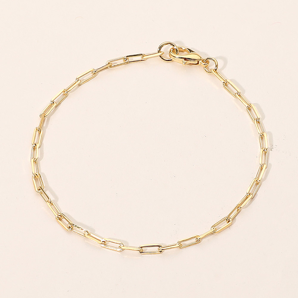 Details • Size : 0.1" H (2mm), 6.5" L • Elegant chain bracelet featuring a minimalist link design for timeless sophistication. Lightweight and versatile, it’s perfect for layering or wearing alone. Presented on a “one & only” card for effortless gifting and everyday elegance. • Gold Filled • Lead and Nickel Compliant • Made In Brazil
