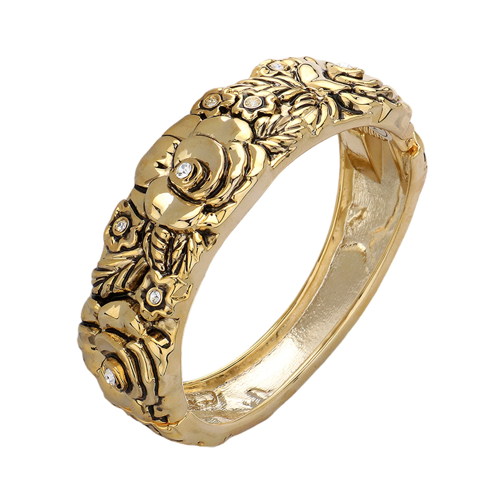 Floral Rose Metal Hinged Bangle Bracelet