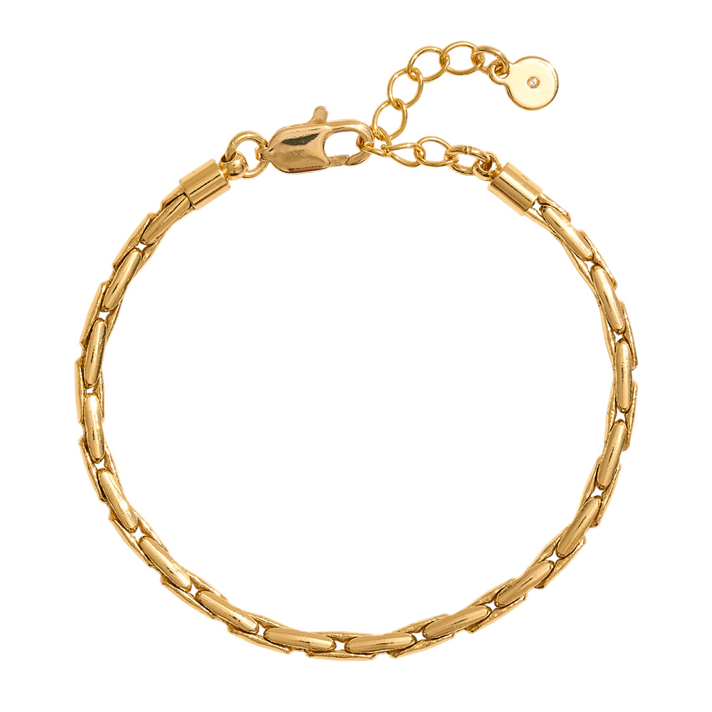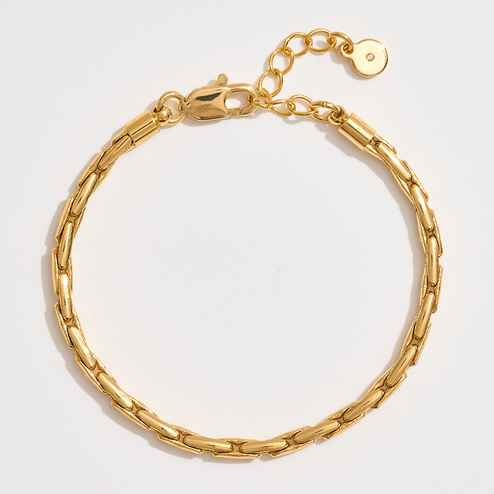 Details • Size : 0.2" H, 7" + 1.5" L • Lobster Clasp Closure • This sleek elongated link bracelet brings a refined touch to your everyday look. Its polished chain design adds elegance while the adjustable closure ensures a perfect fit. A versatile piece that transitions seamlessly from casual outfits to sophisticated ensembles. • Brass • Gold Dipped • Hypoallergenic • Made In Korea