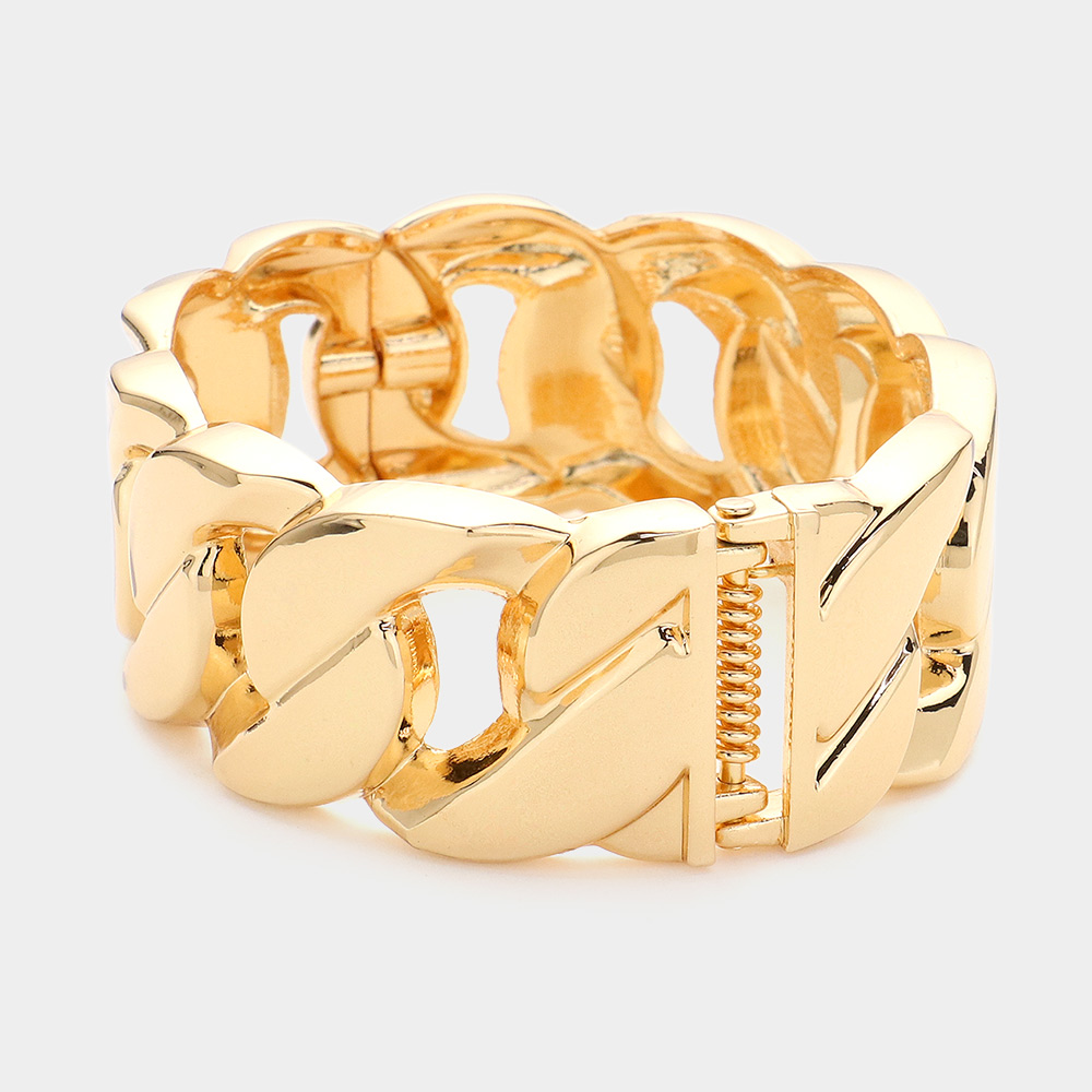 Metal Chunky Cuban Chain Hinged Bangle Bracelet