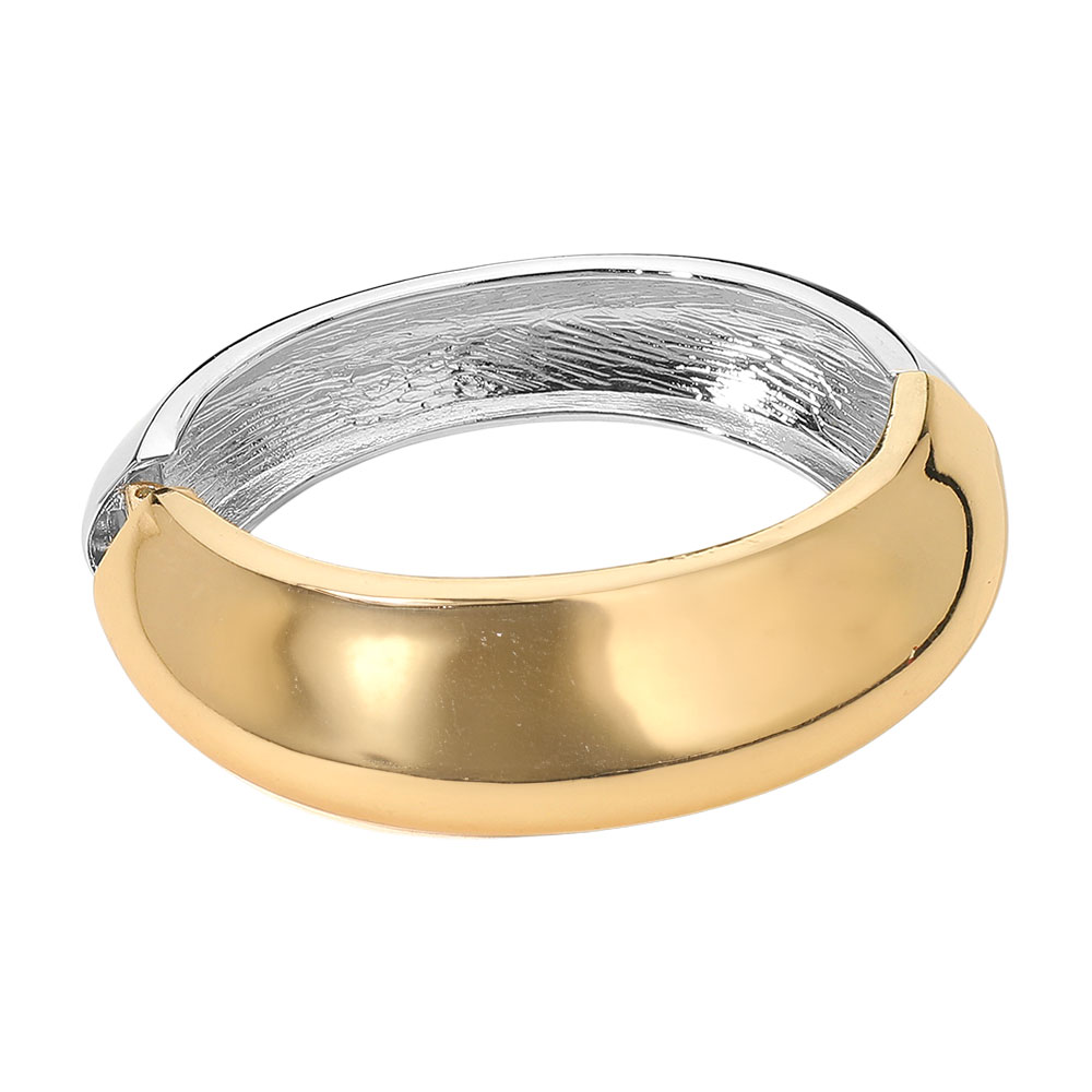 Details • Size : 1.25" H, 2.3" D • Hinged Closure • Chic dome-style cuff bracelet featuring a smooth, high-shine finish and bold rounded shape. Designed for effortless elegance, this statement piece adds a touch of sophistication to any outfit, perfect for both casual wear and formal occasions. • Lead and Nickel Compliant