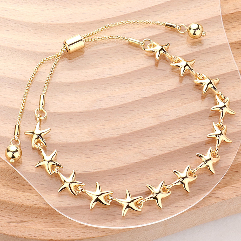 Metal Starfish Link Adjustable Pull Tie Bracelet