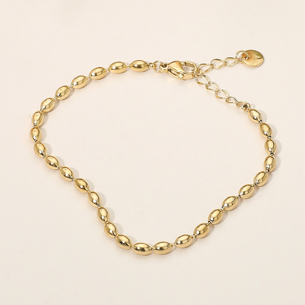 Details • Size : 0.2" H, 6.75" + 1.5" L • Lobster Clasp Closure • Water Resistant • This elegant beaded chain bracelet features a delicate series of polished oval beads linked together for a timeless look. Its lightweight and versatile style makes it perfect for layering or wearing solo, adding a touch of sophistication to both casual and refined outfits. • Stainless Steel