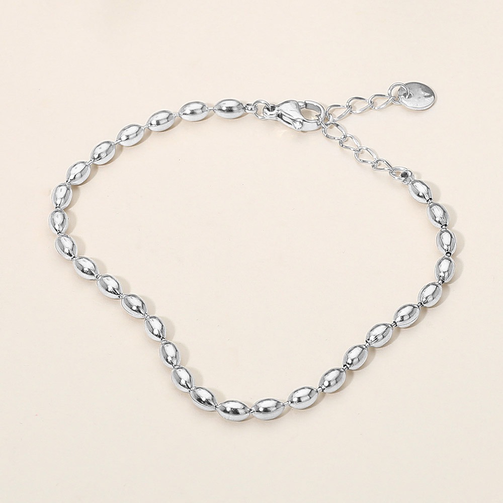 Details • Size : 0.2" H, 6.75" + 1.5" L • Lobster Clasp Closure • Water Resistant • This elegant beaded chain bracelet features a delicate series of polished oval beads linked together for a timeless look. Its lightweight and versatile style makes it perfect for layering or wearing solo, adding a touch of sophistication to both casual and refined outfits. • Stainless Steel