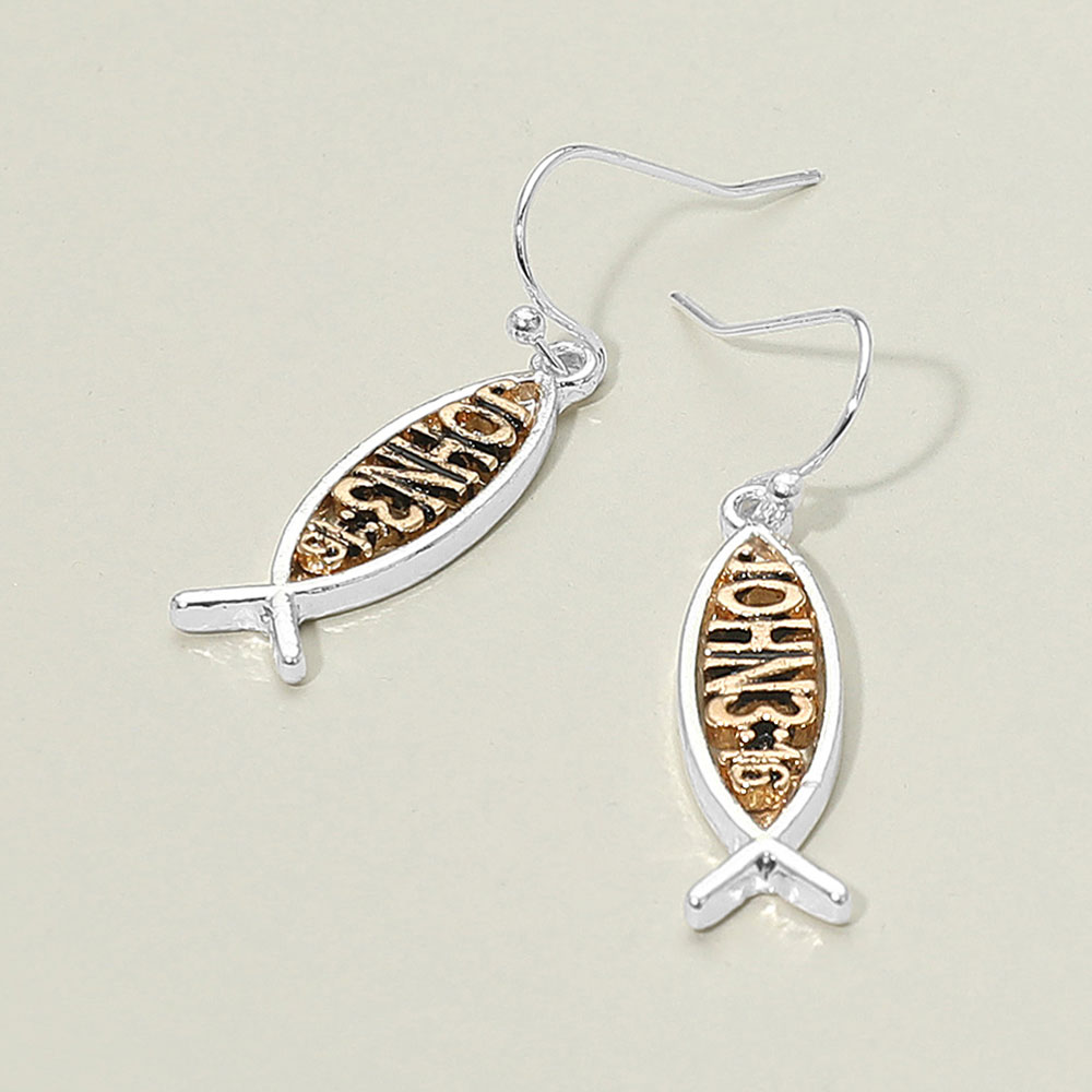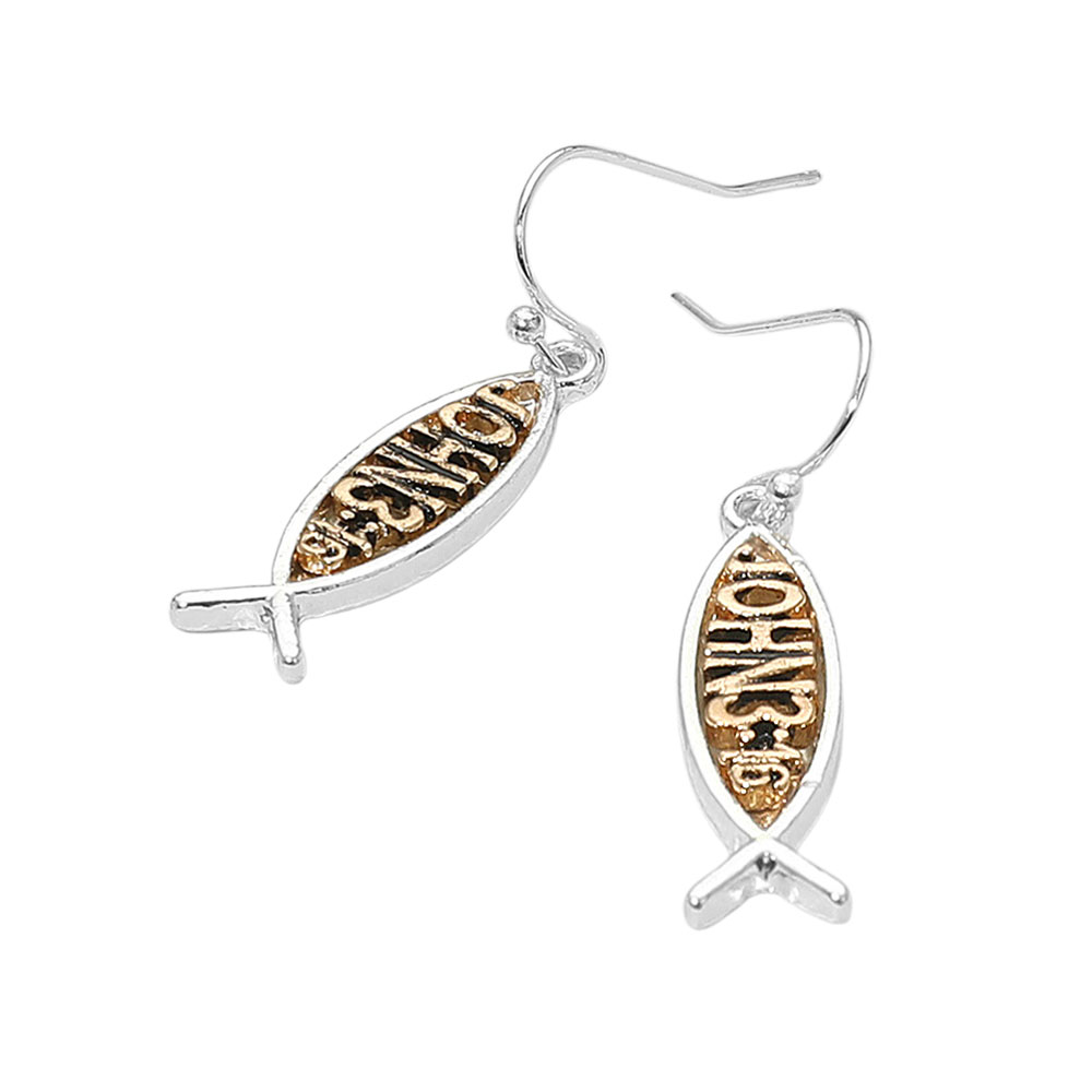 Details • Size : 0.3" X 1.4" • Fish Hook Back • Celebrate your faith with these Ichthys Fish earrings, featuring the traditional Christian fish symbol with intricate detailing. A timeless emblem of devotion and belief, these earrings make a meaningful accessory and thoughtful gift for anyone who values their faith. • Lead and Nickel Compliant